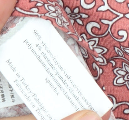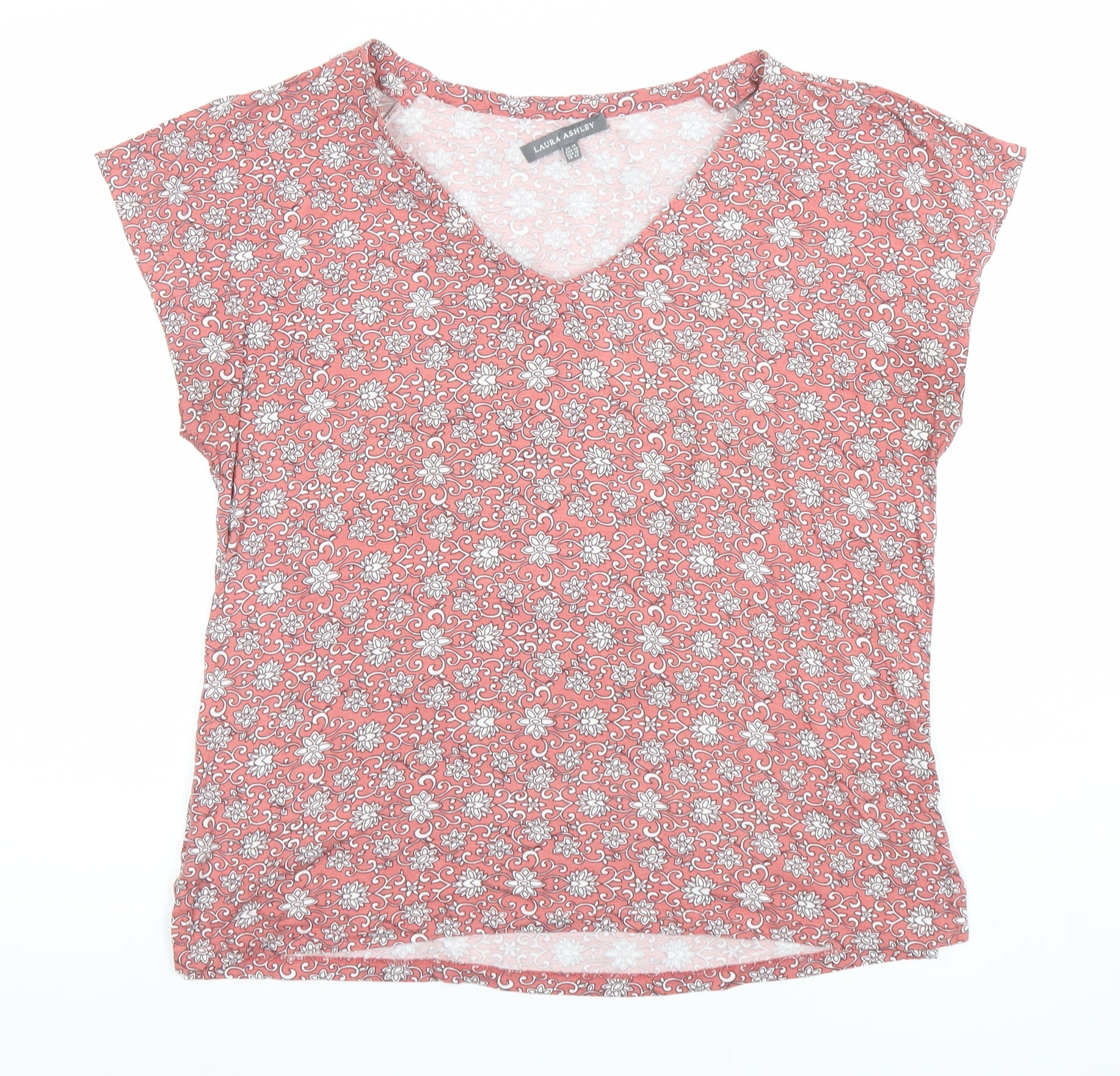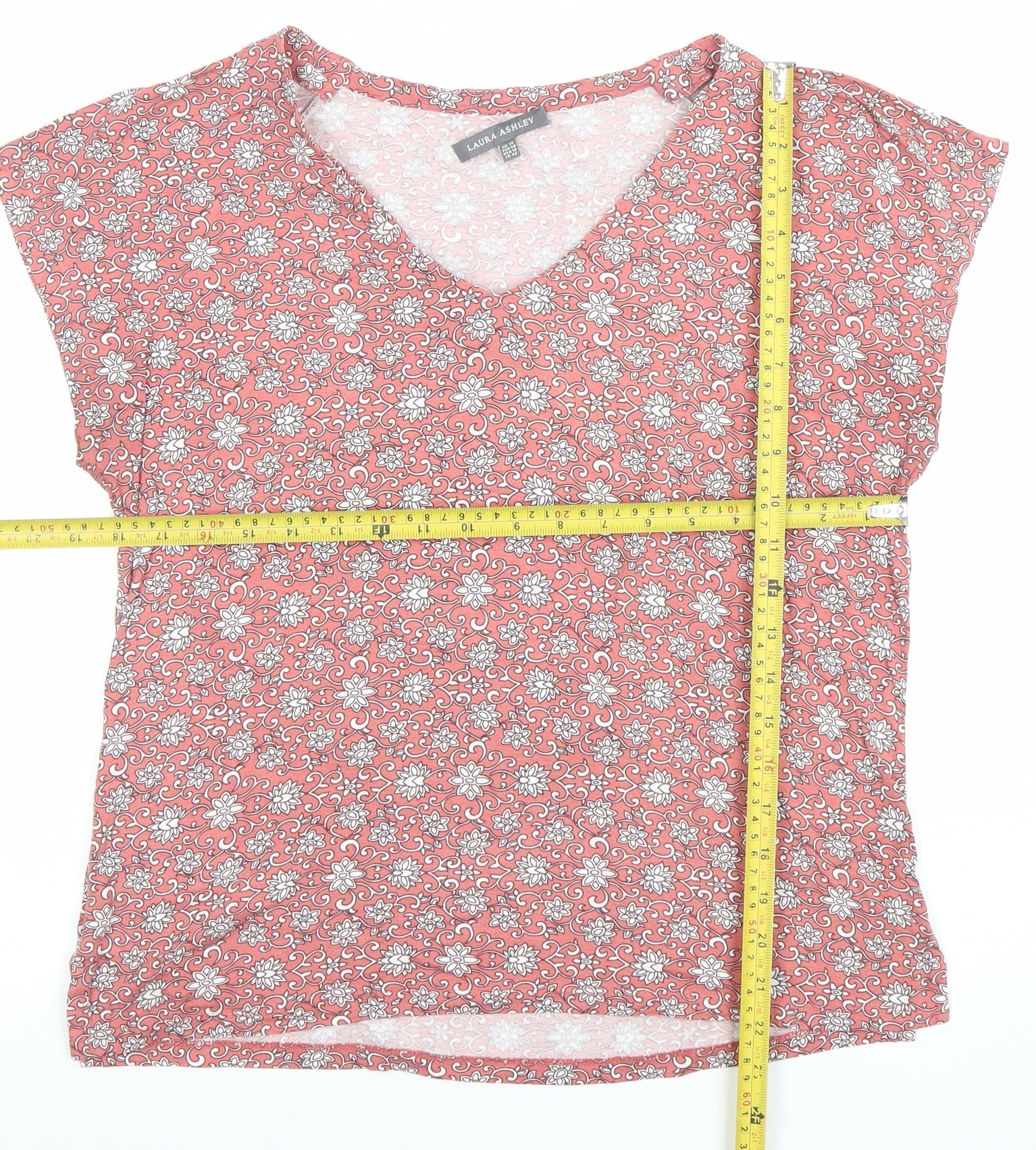 Laura Ashley Womens Pink Floral Viscose Jersey V-Neck T-Shirt Size 14