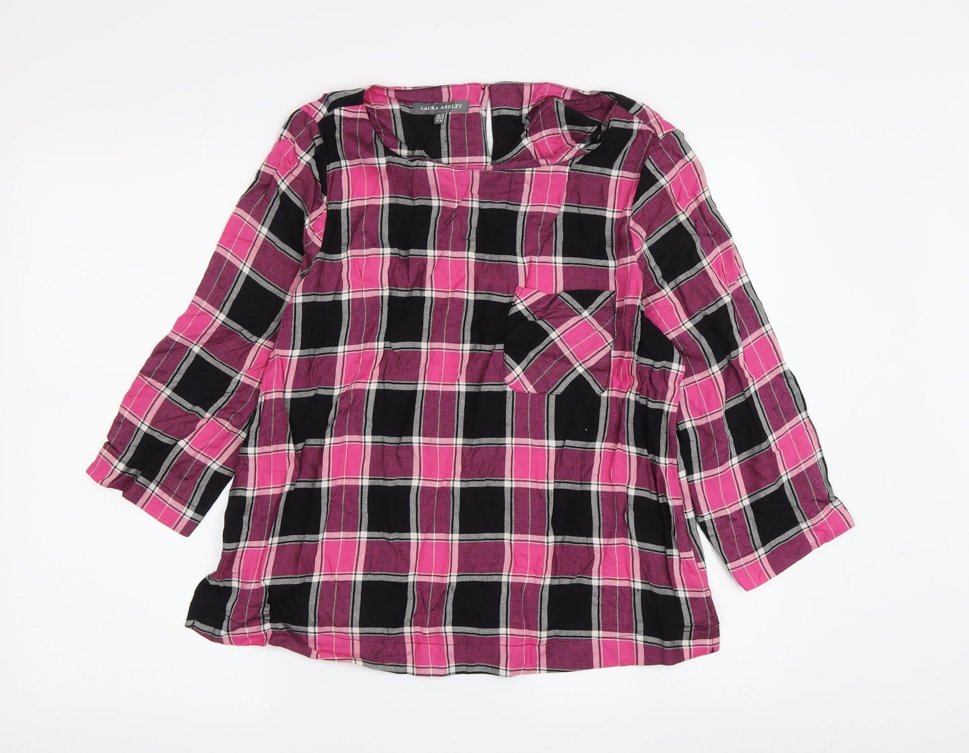 Laura Ashley Women's Plaid Blouse, 3/4 Sleeve, Size 10