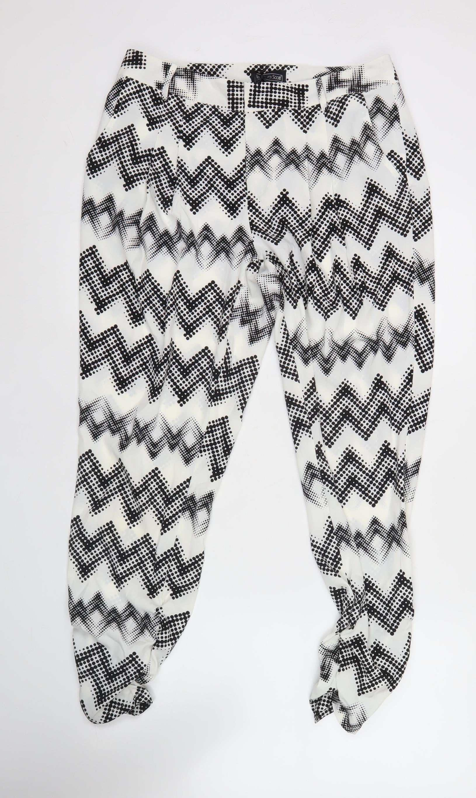 Laura Scott Womens Black White Geometric Harem Trousers Size 12