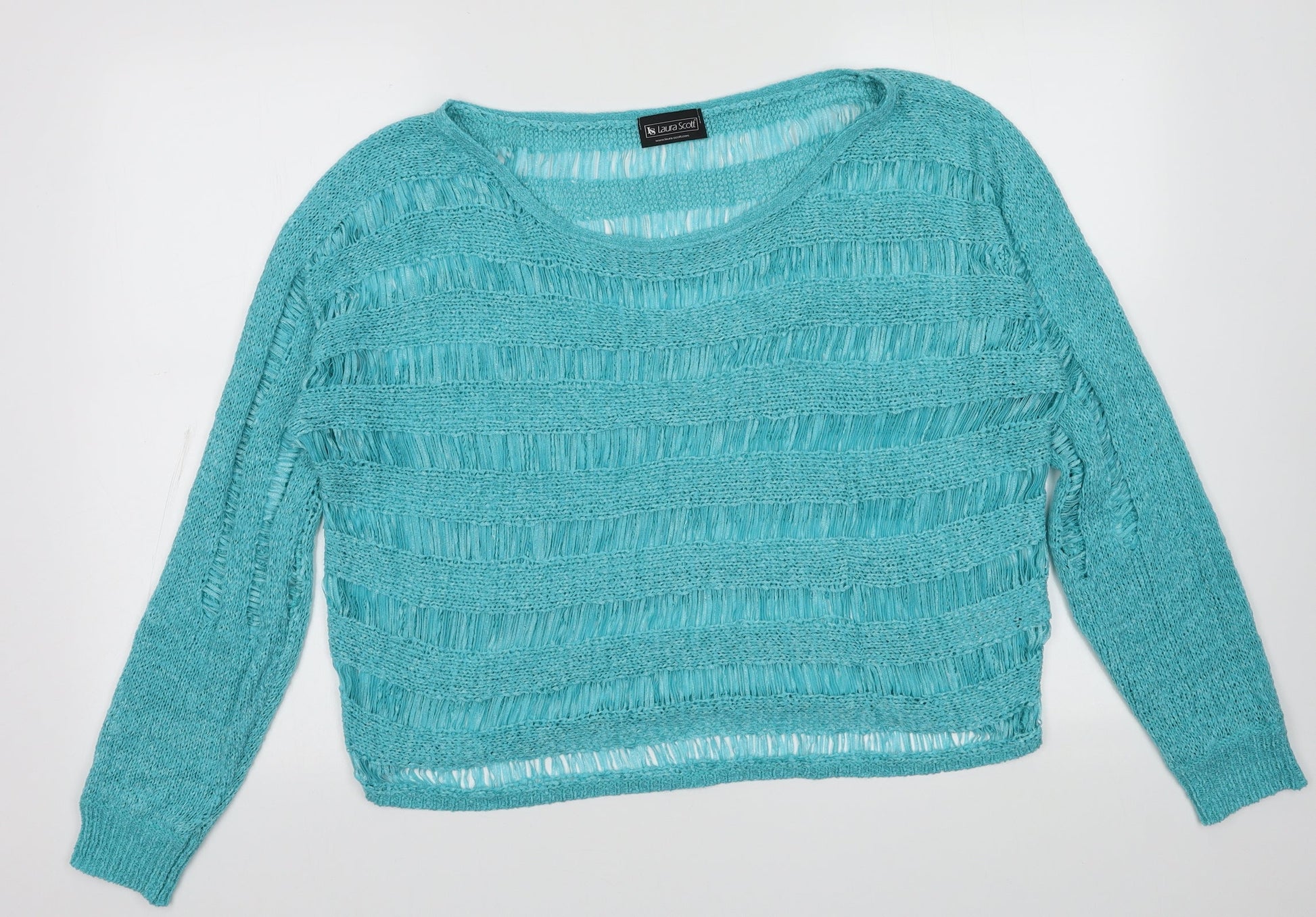 Laura Scott Womens Blue Crew Neck Striped Acrylic Pullover Jumper Size 14