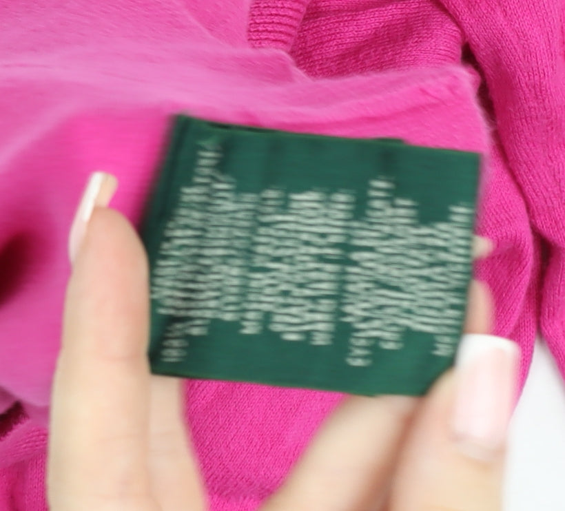 Lauren Ralph Lauren Women's Pink Cotton Cardigan L Crew Neck Long Sleeve