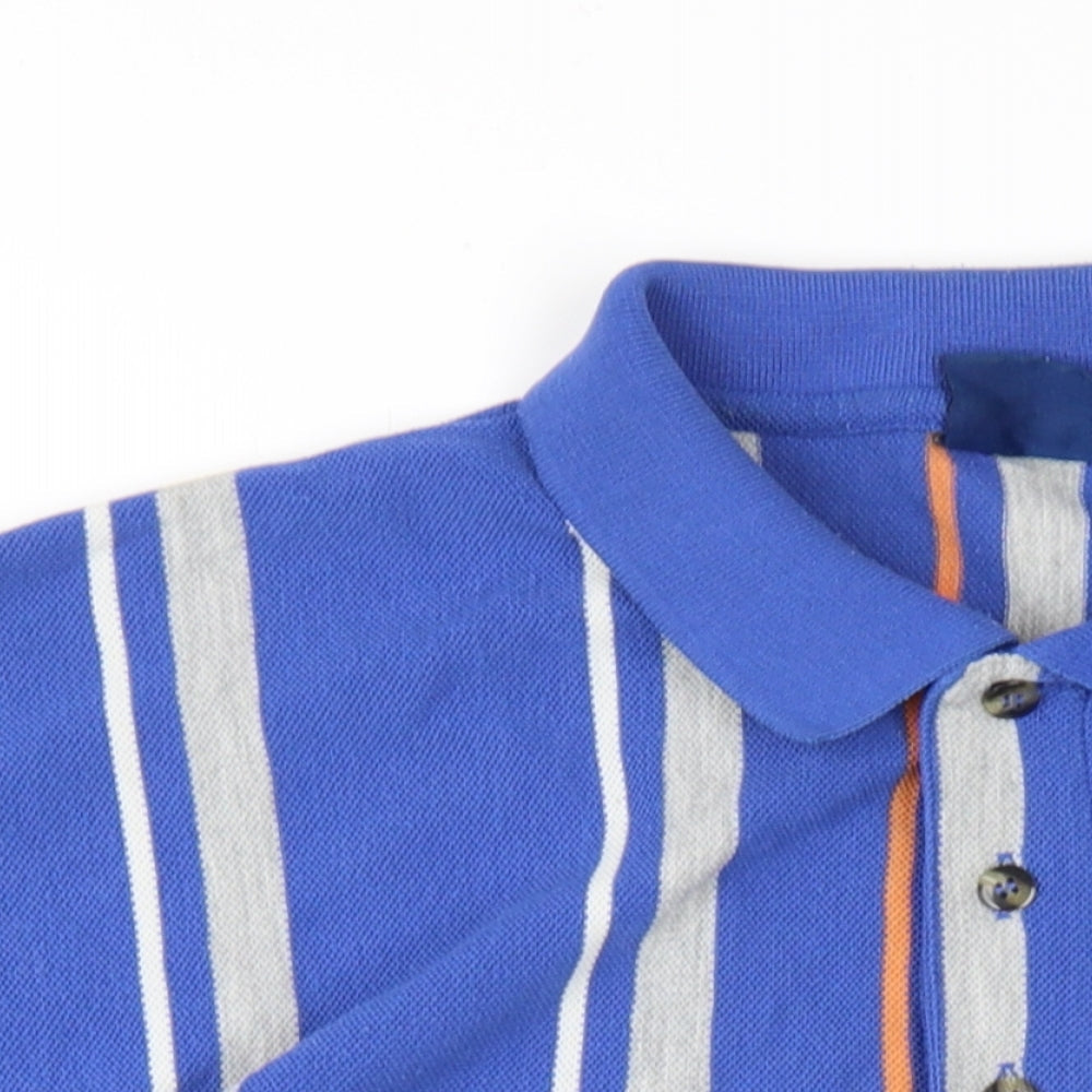 Le Shark Mens Blue Striped Polyester Polo Size L Collared Button