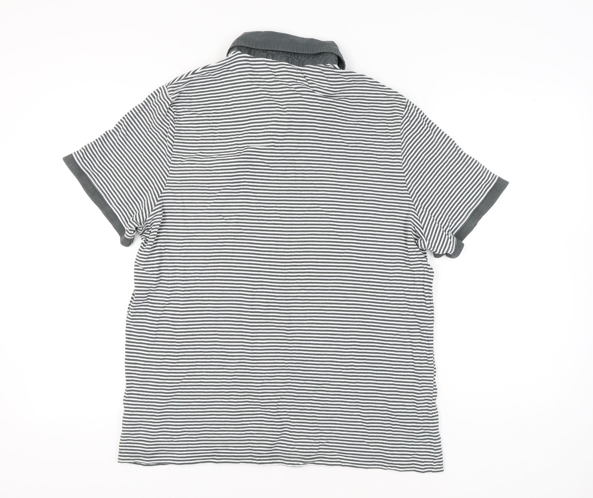 Lee Cooper Men’s Grey Striped Cotton Polo Shirt UK 3XL Casual