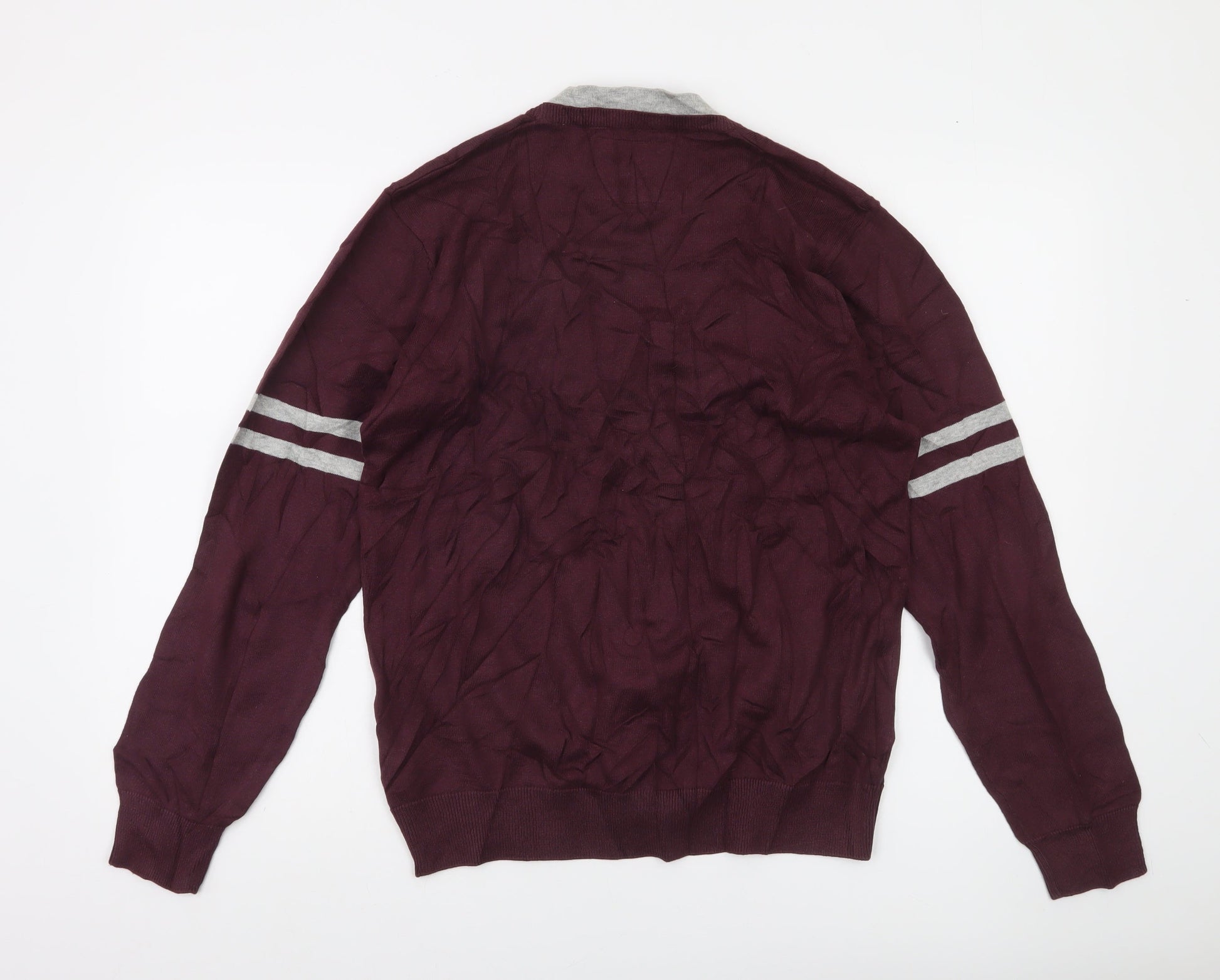 Lee Cooper Men’s Purple Cotton Button V-Neck Cardigan L