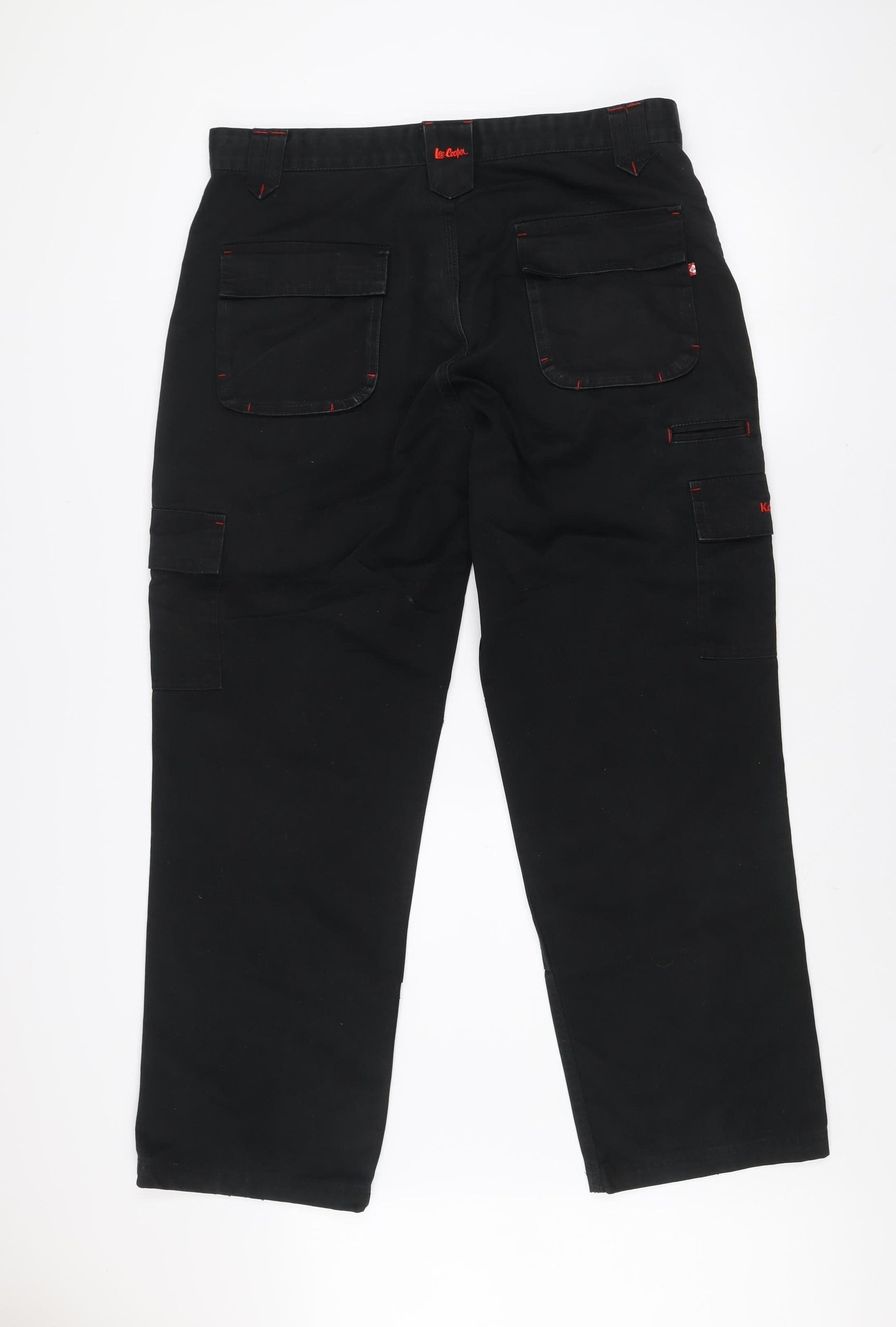Lee Cooper Men's Black Cargo Workwear Trousers 38R Polyester Cotton Blend