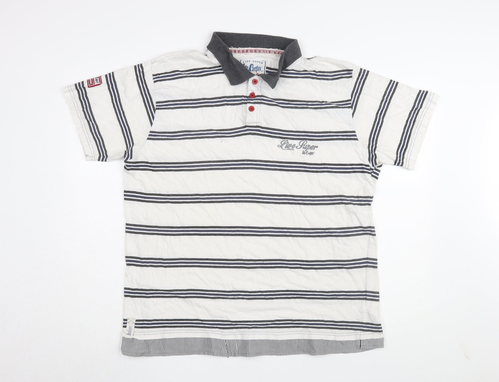 Lee Cooper Men's White Striped Polo T-Shirt 2XL