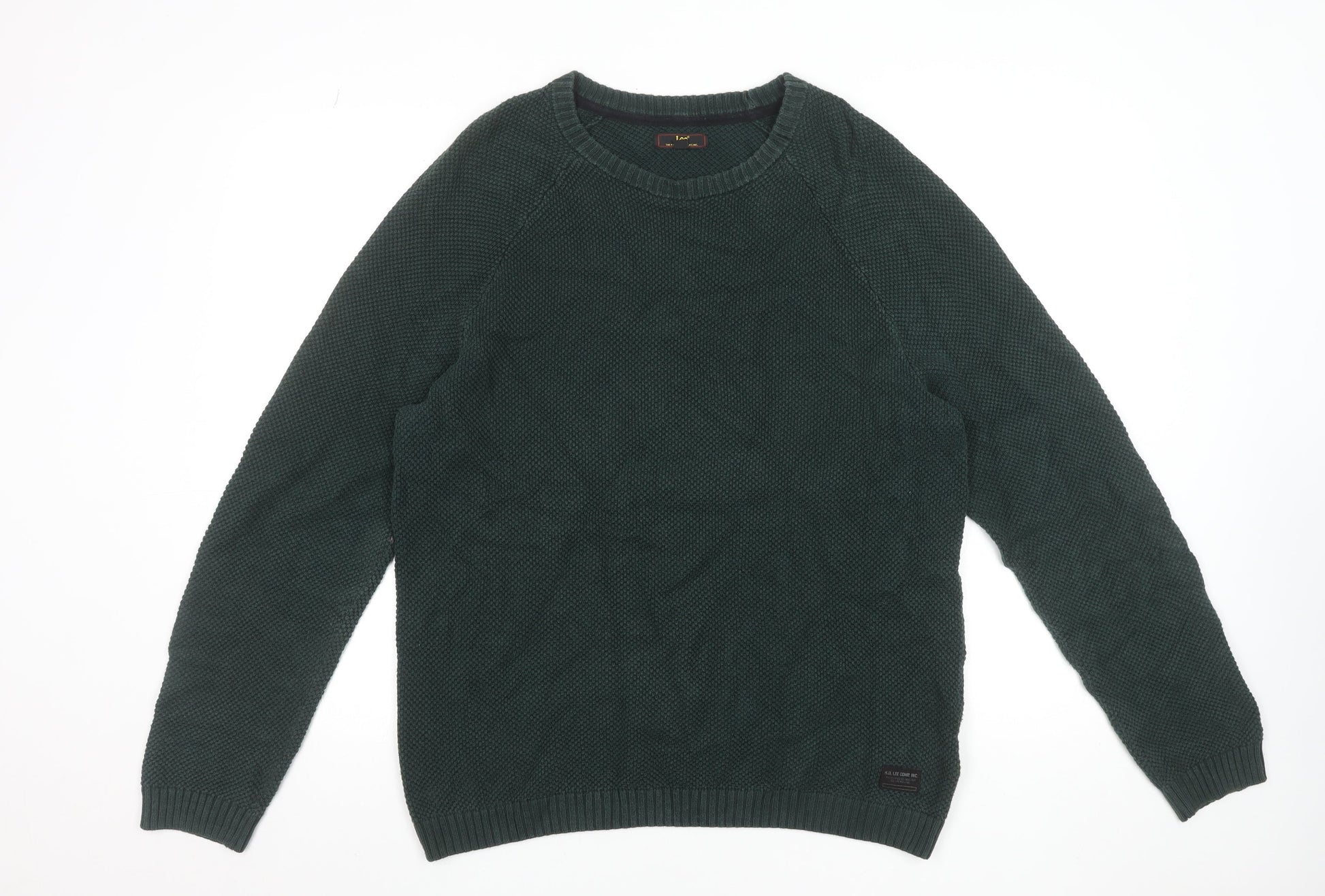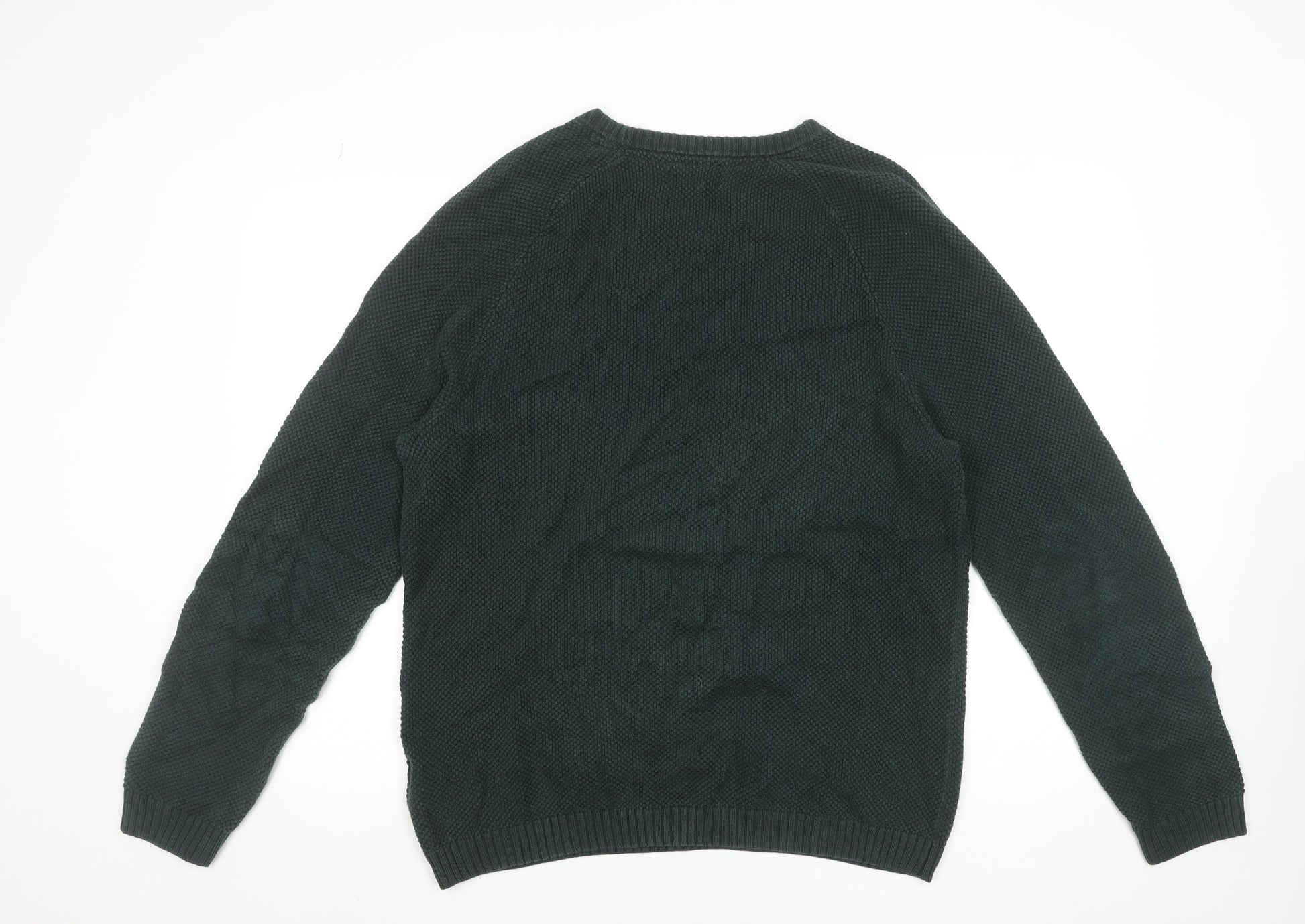 Lee Men’s Green Waffle-Knit Cotton Crew Neck Jumper L