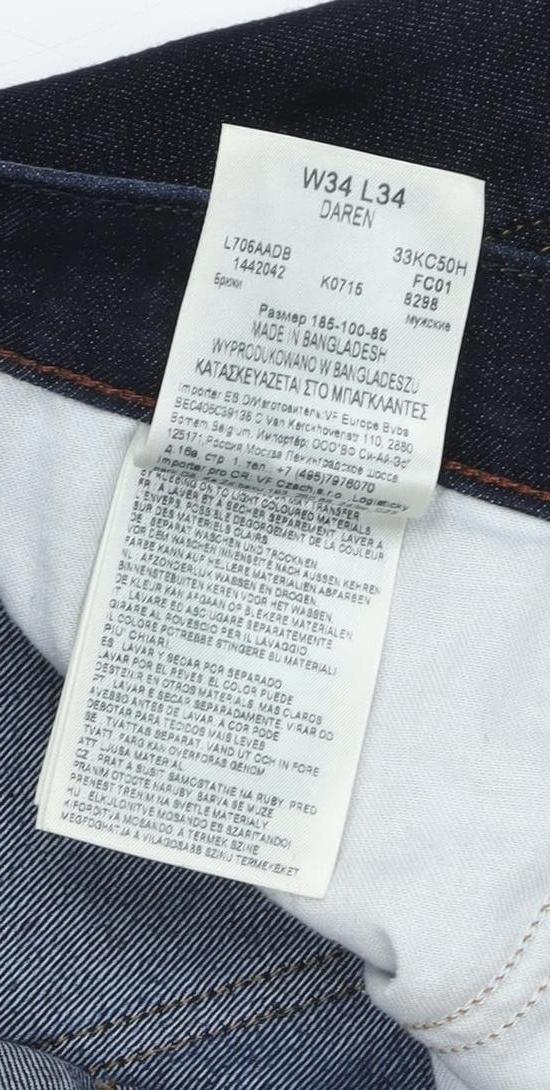 Lee Men's Blue Straight Jeans Size 34 Regular Fit