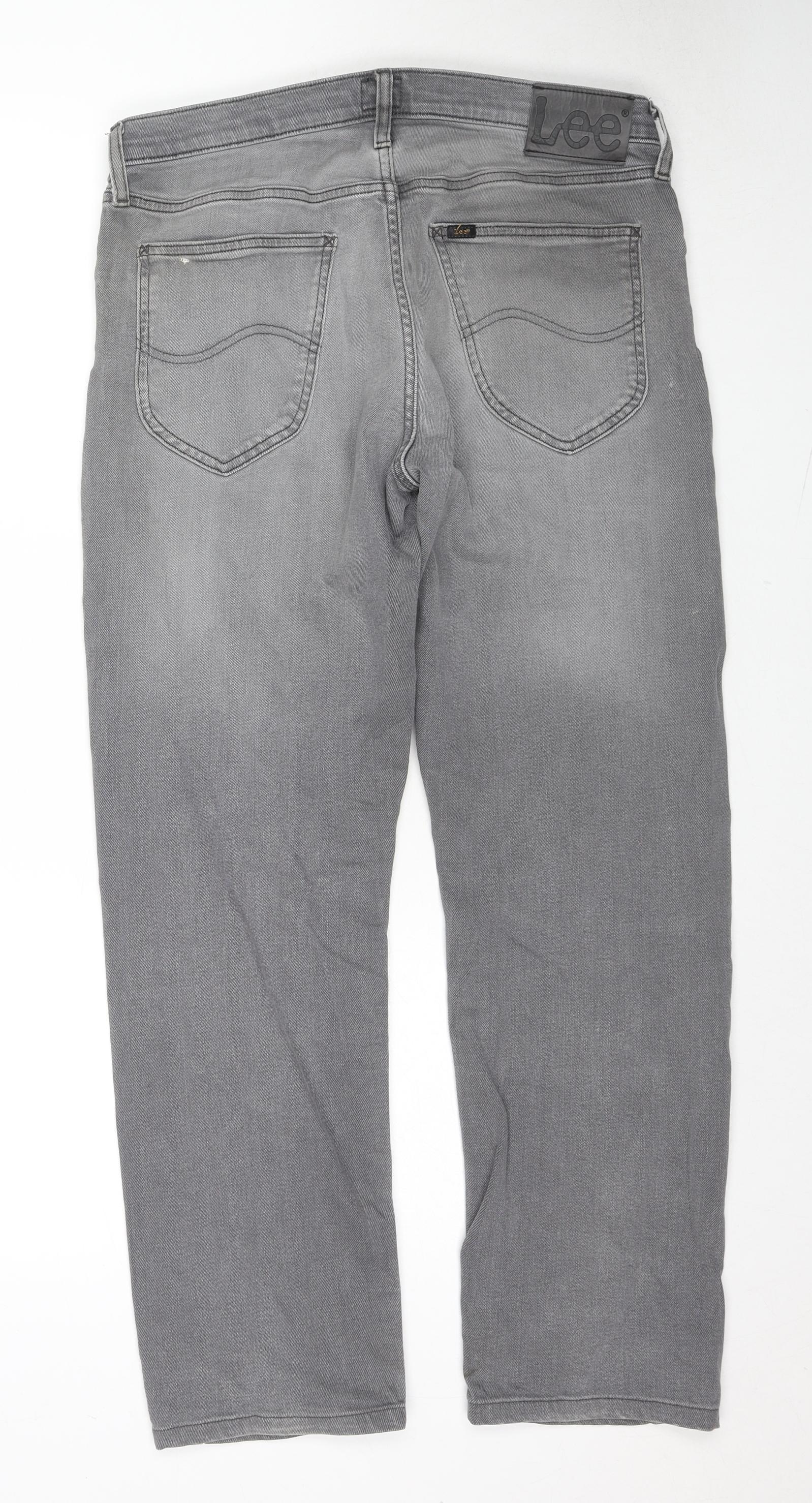 Lee Mens Grey Cotton Straight Jeans Size 32 in L32 in Regular Zip