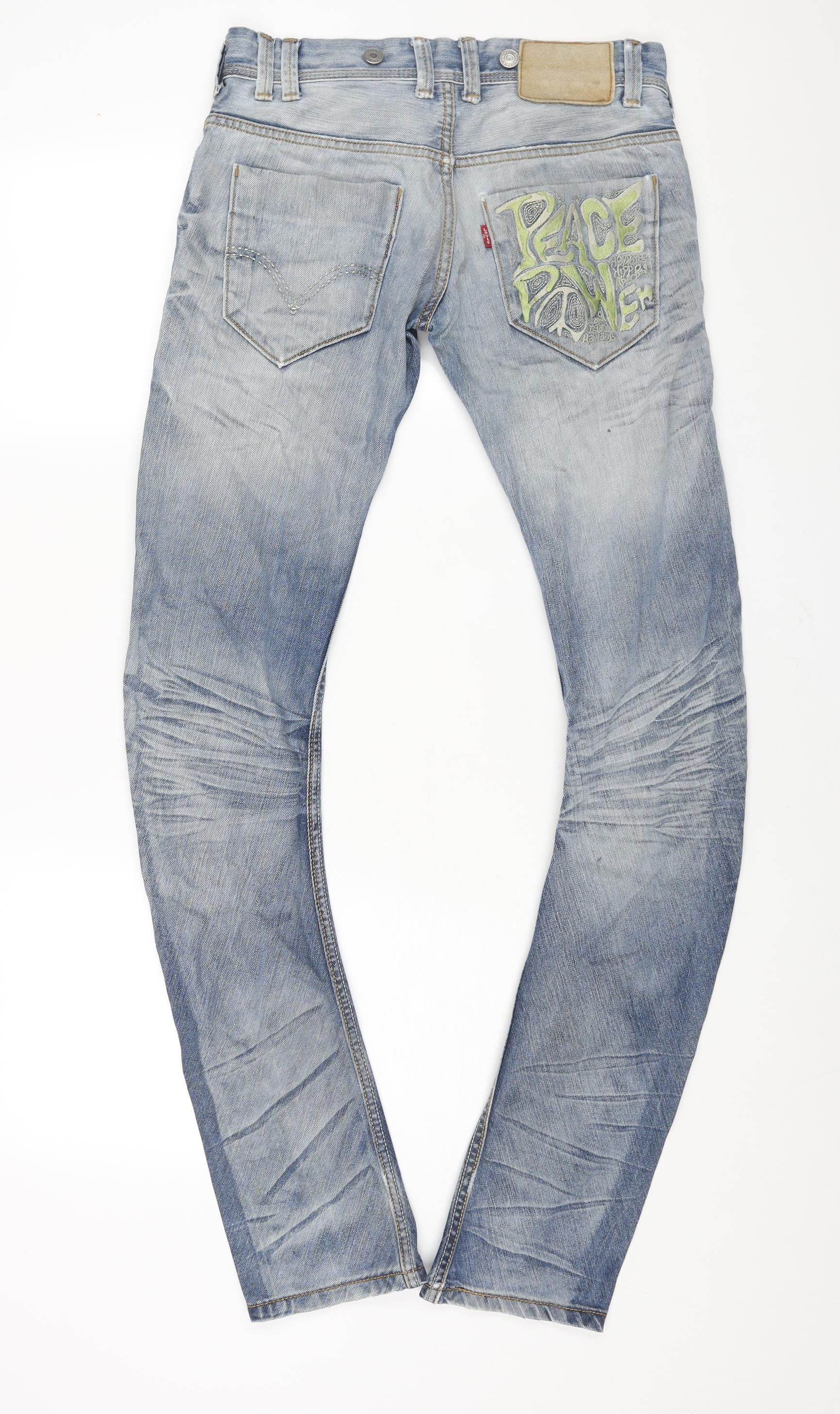 Levi's Mens Blue Cotton Skinny Jeans Size 30 in L34 in Regular Zip - Embroidered Pocket Peace Power