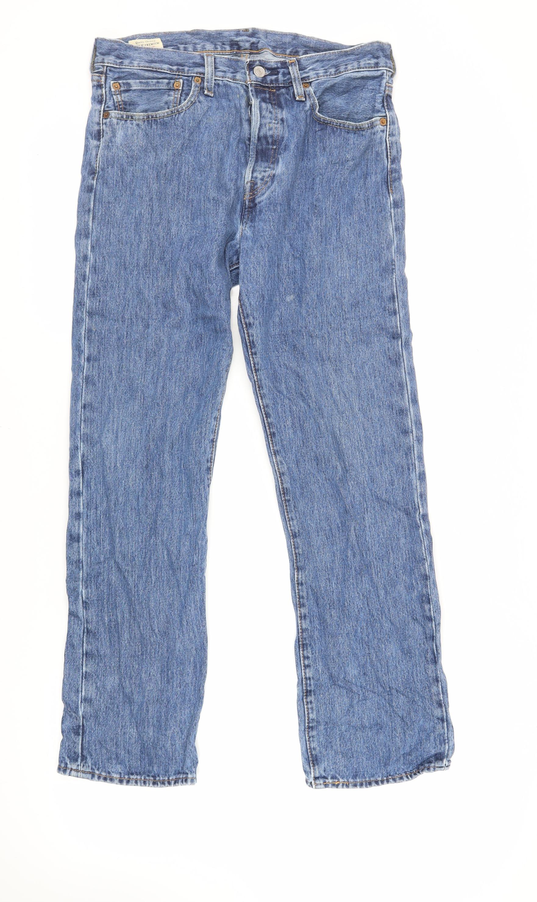 Levi's Mens Blue Cotton Straight Jeans Size 32 in L30 in Regular Button - Vintage