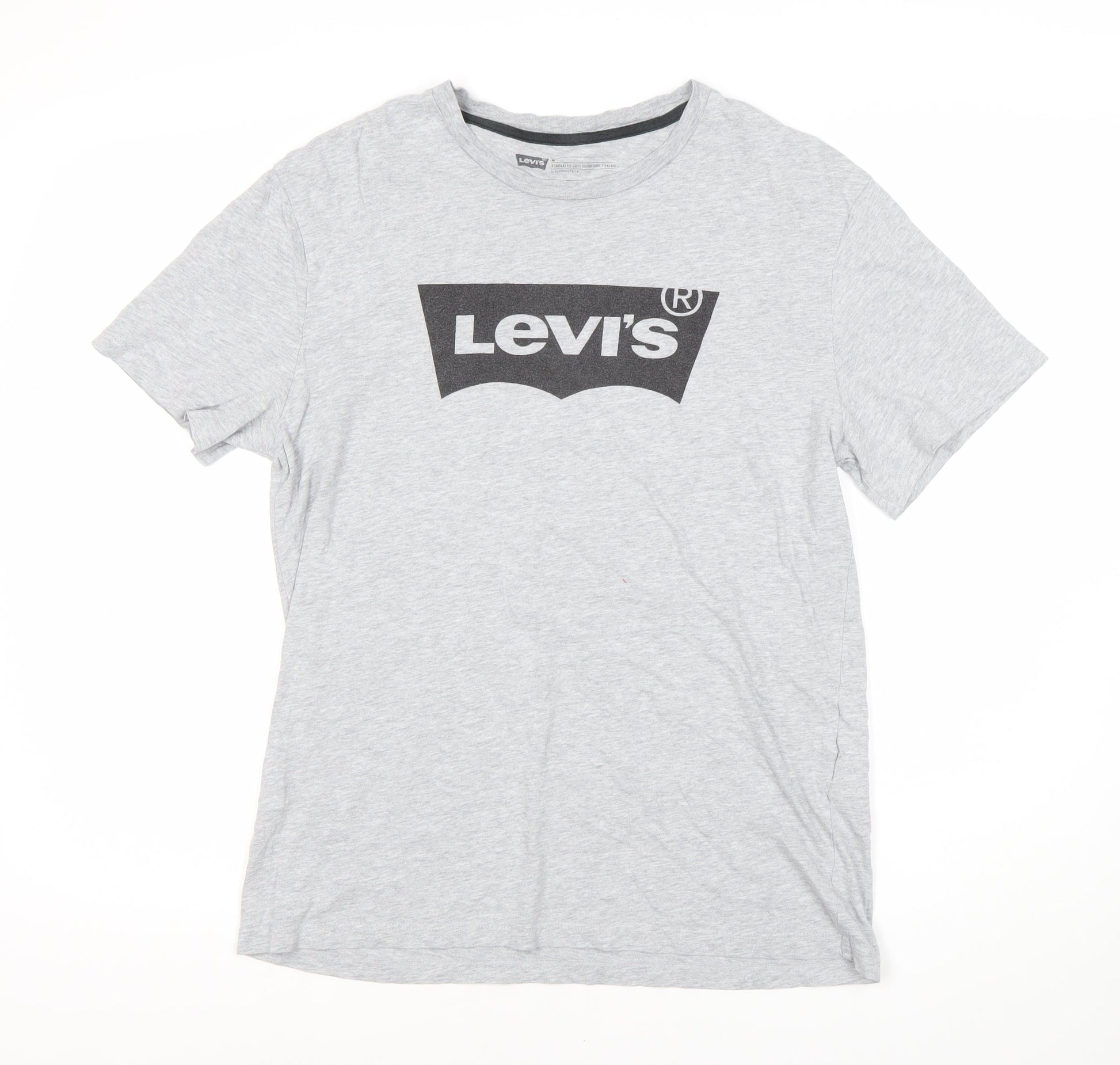 Levi's Men's Grey Cotton Crew Neck Logo T-Shirt