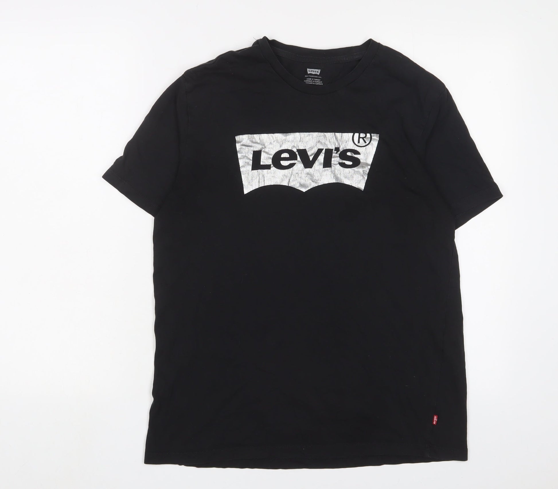 Levi's Womens Black Cotton Basic T-Shirt Size M Crew Neck - Logo