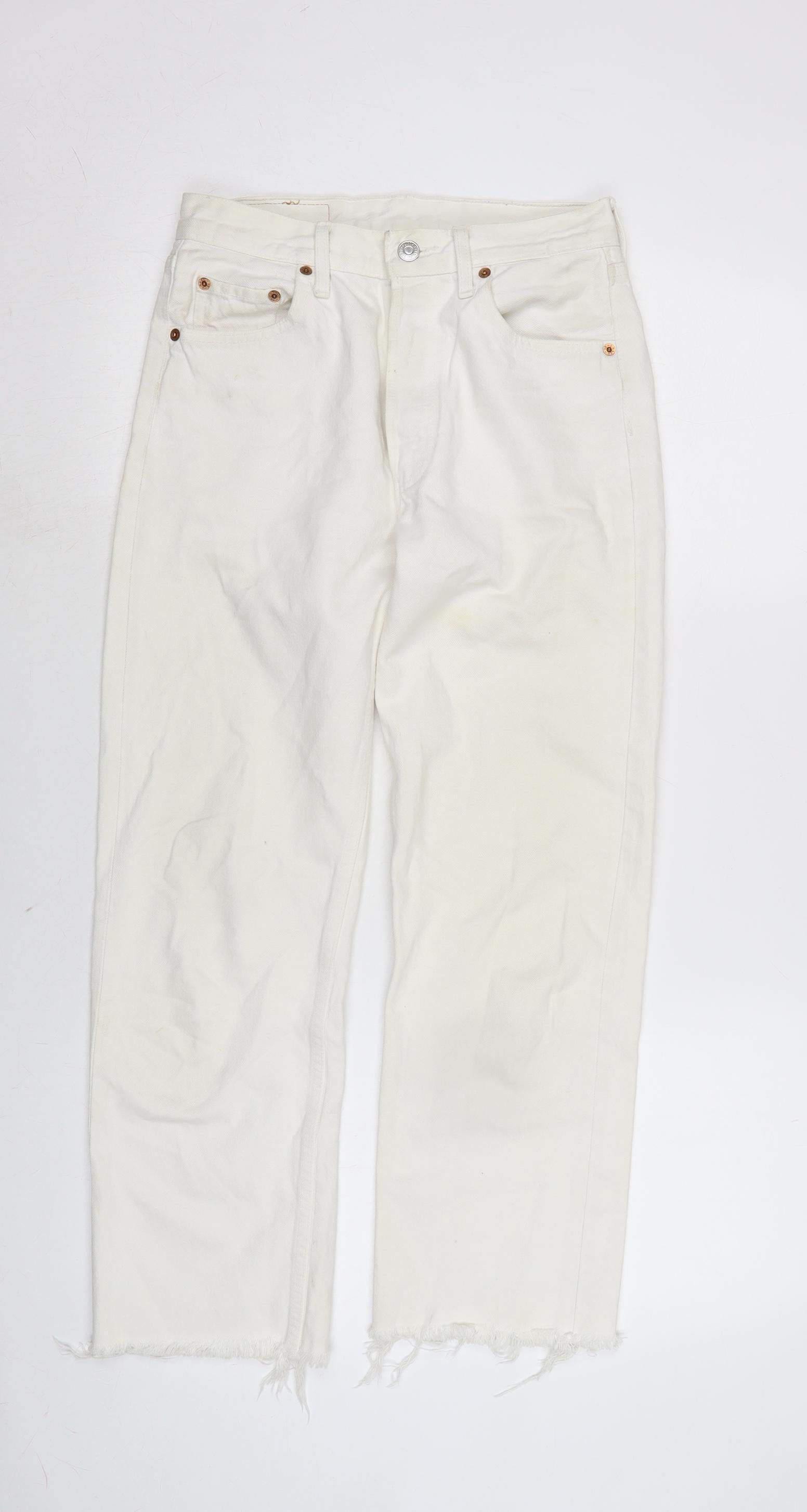 Levis Womens Ivory Cotton Straight Jeans Size 26 in L25 in Regular Button - Raw Hem