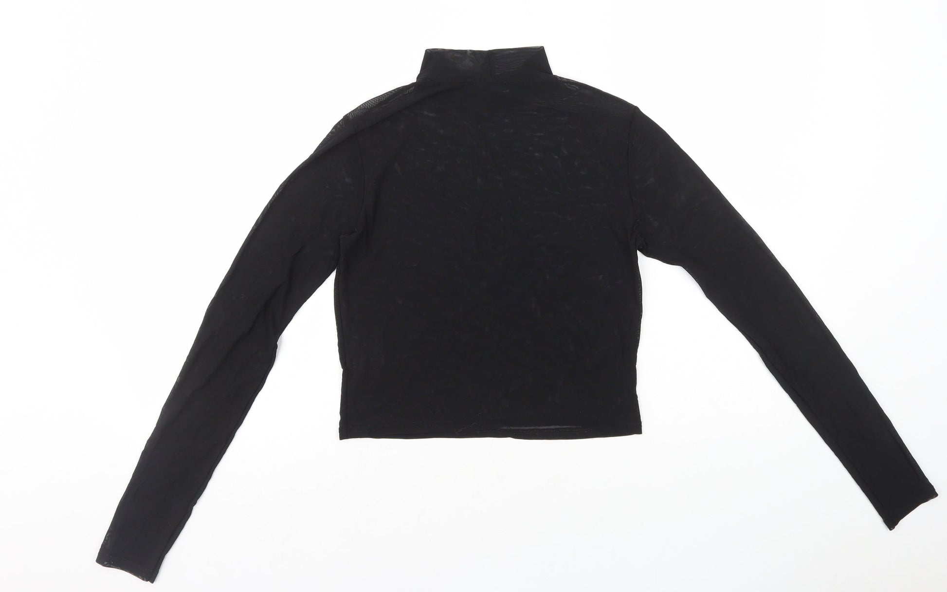 Light Before Dark Womens Black Nylon Cropped T-Shirt Size S High Neck
