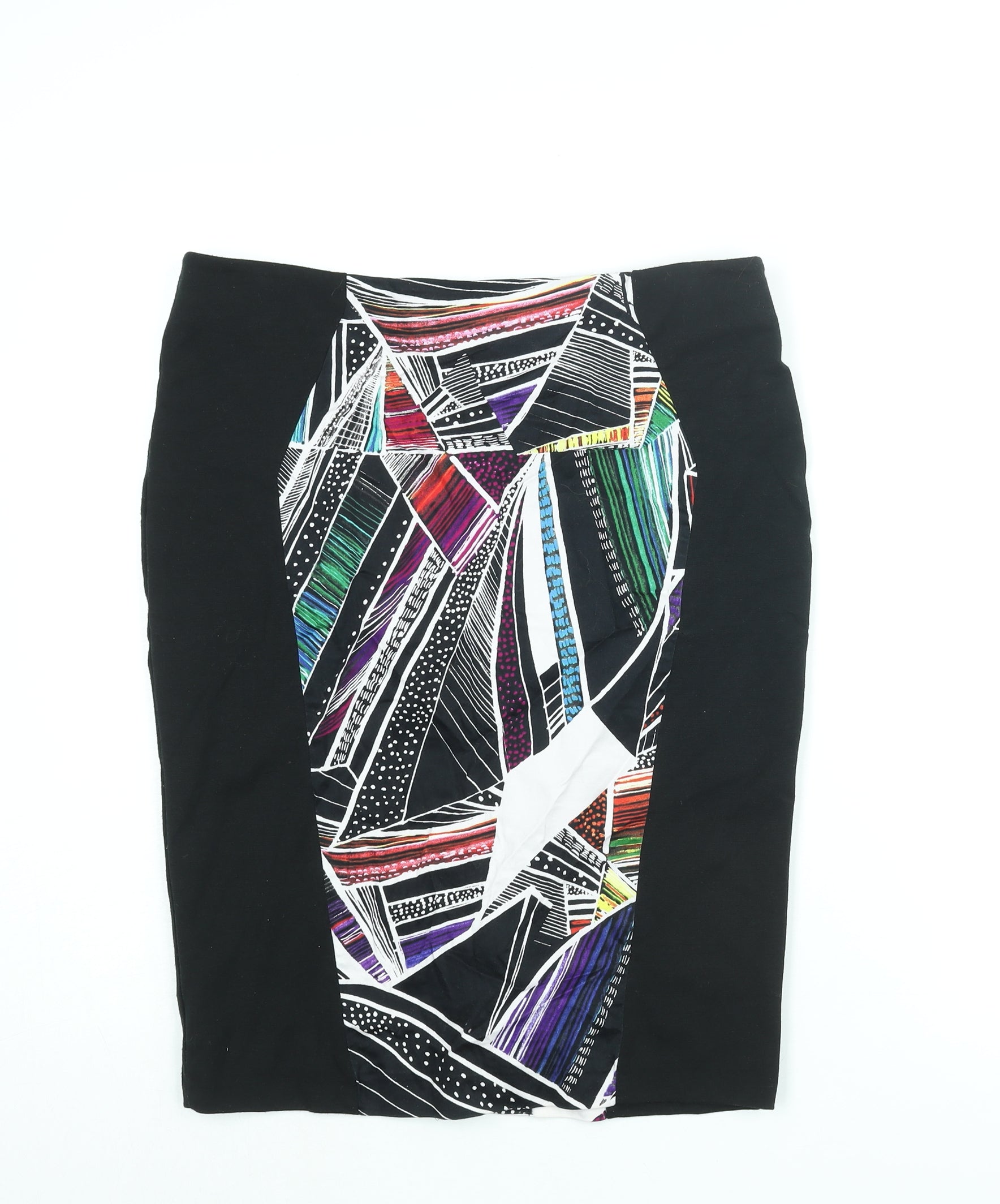 Limited Collection Womens Black Polyester Straight & Pencil Skirt Size 14 Zip - Geometric Print