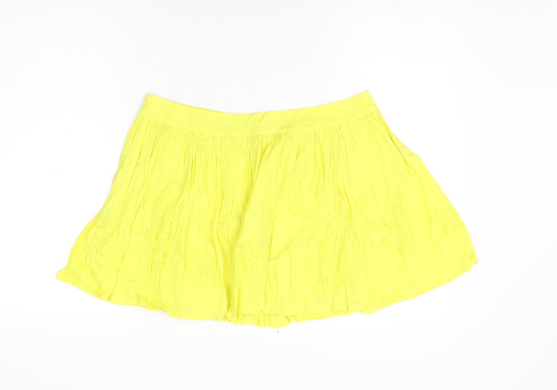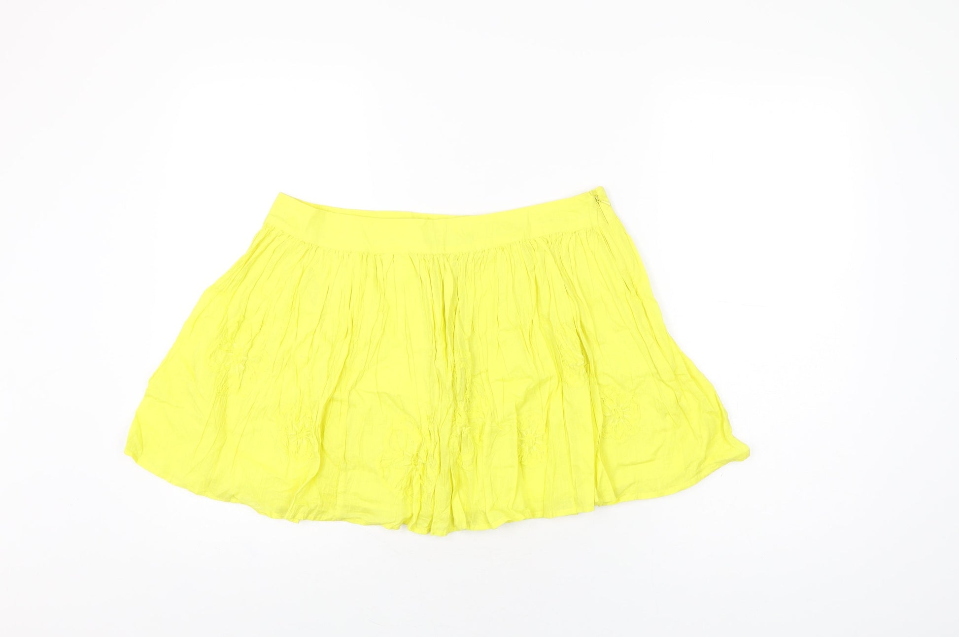 Limited Collection Womens Yellow Floral Cotton Mini Skirt Size 12 Zip