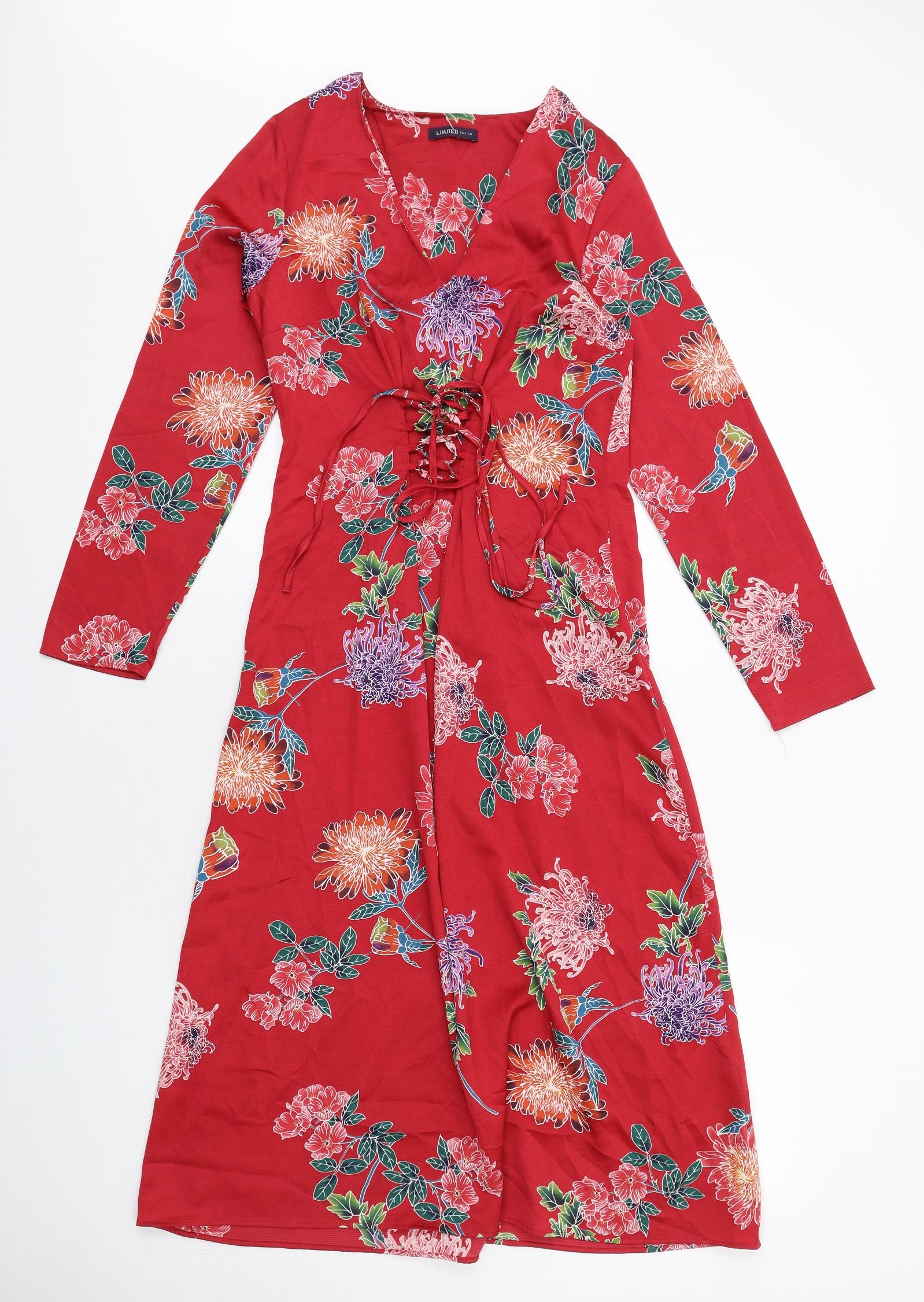 Limited Edition Womens Red Floral Polyester A-Line Size 8 V-Neck Pullover