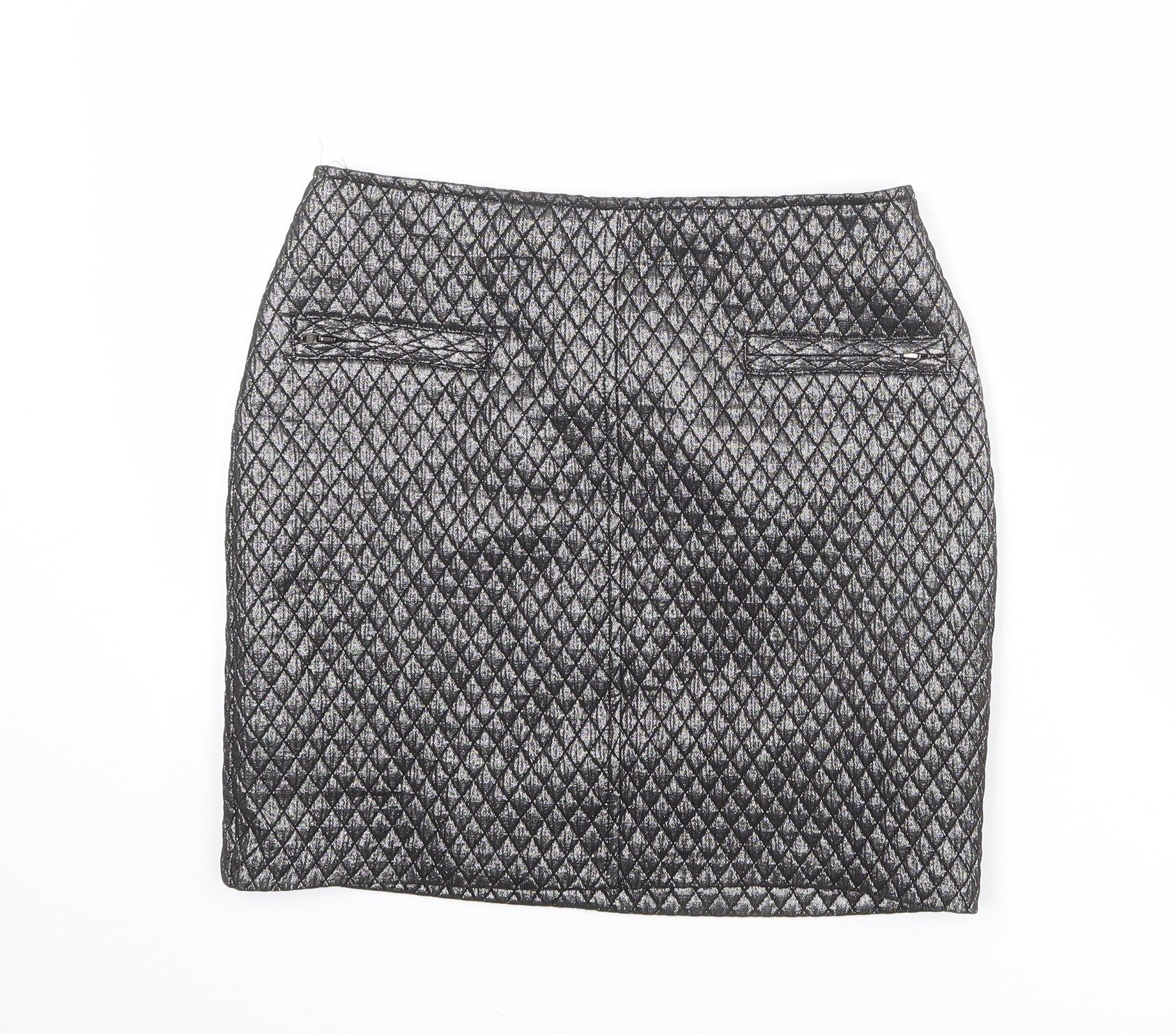 Limited Edition Womens Silver Argyle/Diamond Polyester Mini Skirt Size 8 Zip