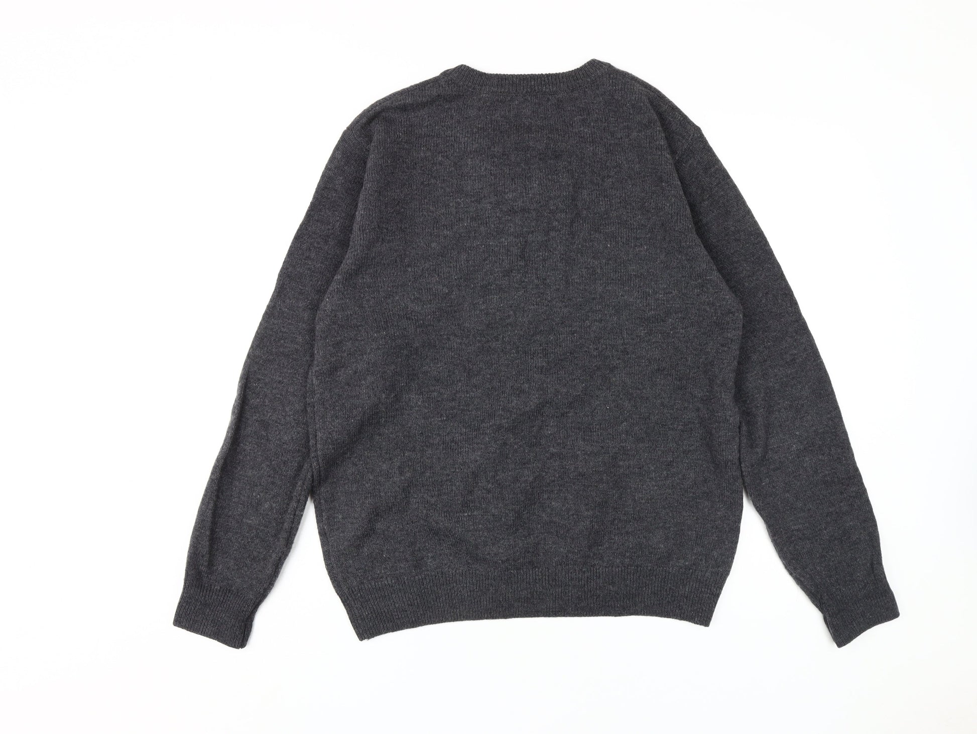 Lincoln Grey V-Neck Wool Men's Pullover Jumper L