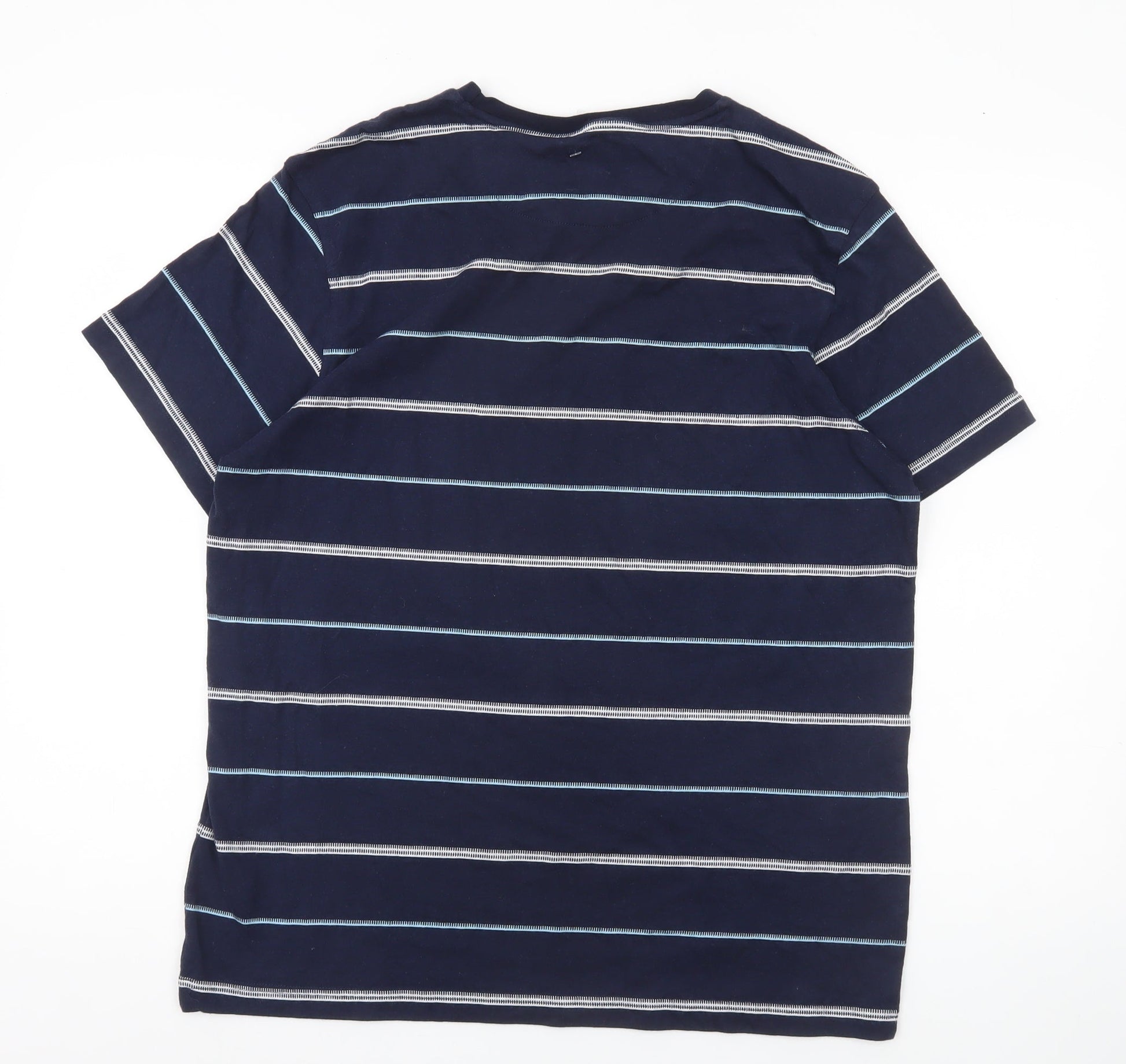 Lincoln Men’s Blue Striped Crew Neck Short Sleeve T-Shirt L