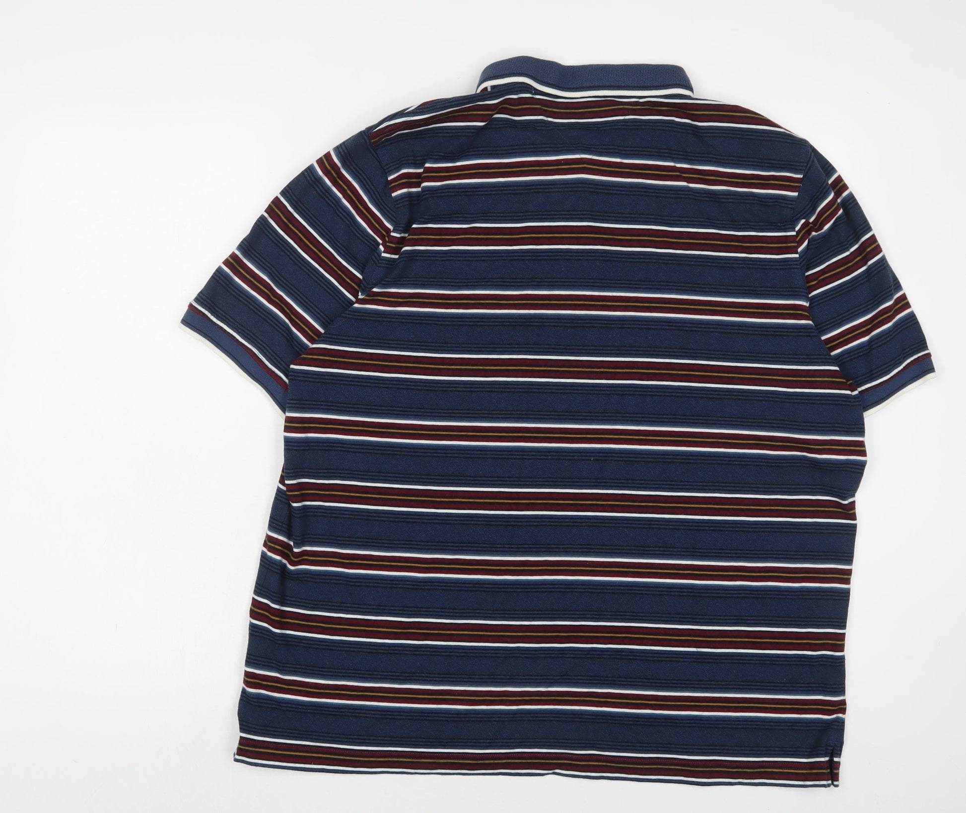 Lincoln Mens Blue Striped Cotton Polo Size 2XL Collared Button