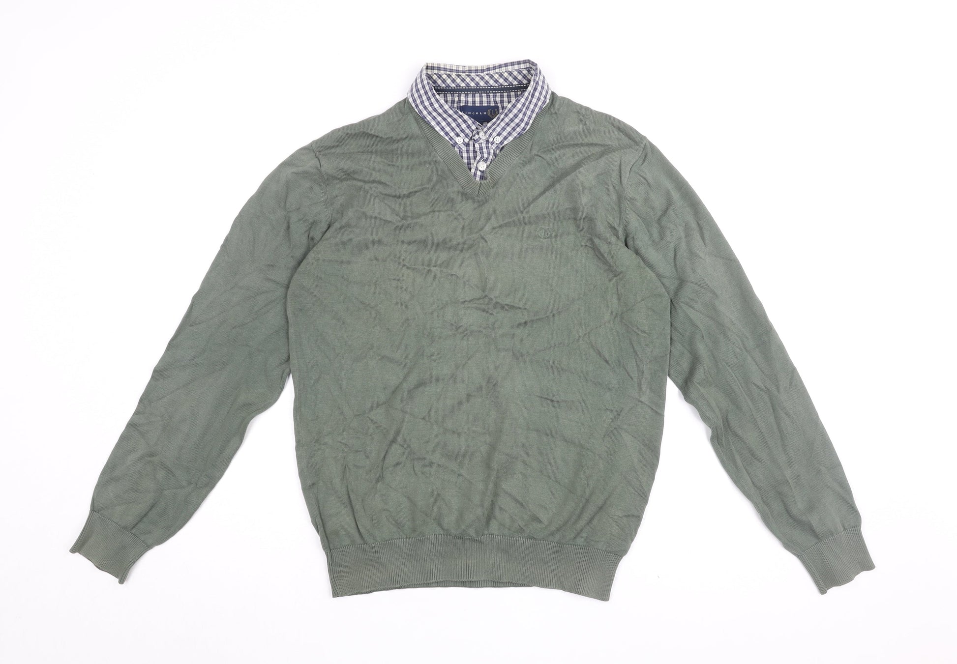 Lincoln Men's Green V-Neck Cotton Pullover Jumper M