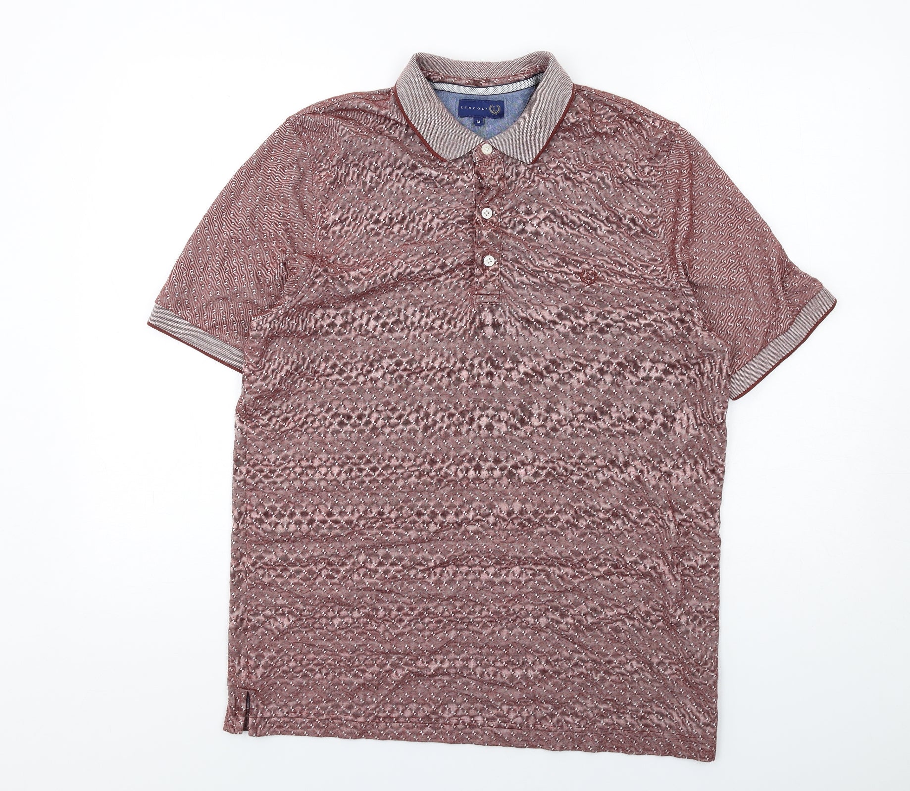 Lincoln Mens Red Geometric Polyester Polo Size M Collared Button