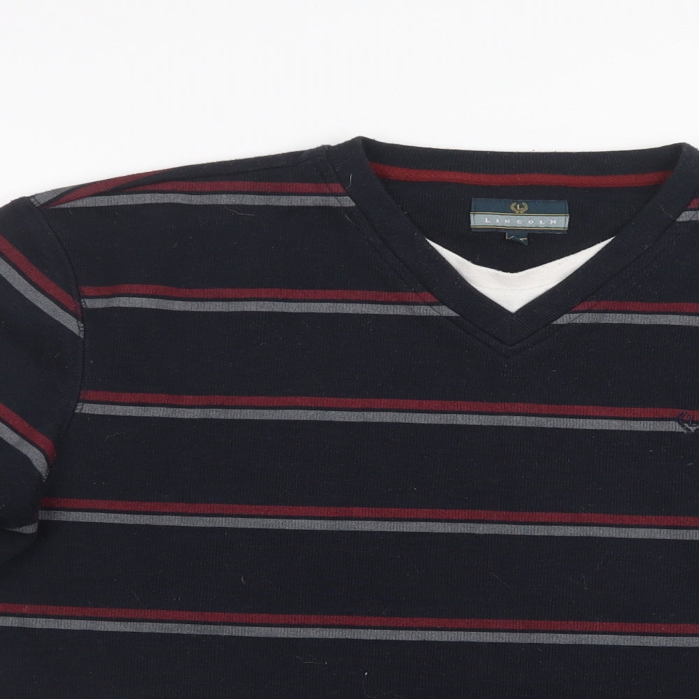 Lincoln Mens Red Striped Knit Pullover Jumper Size L