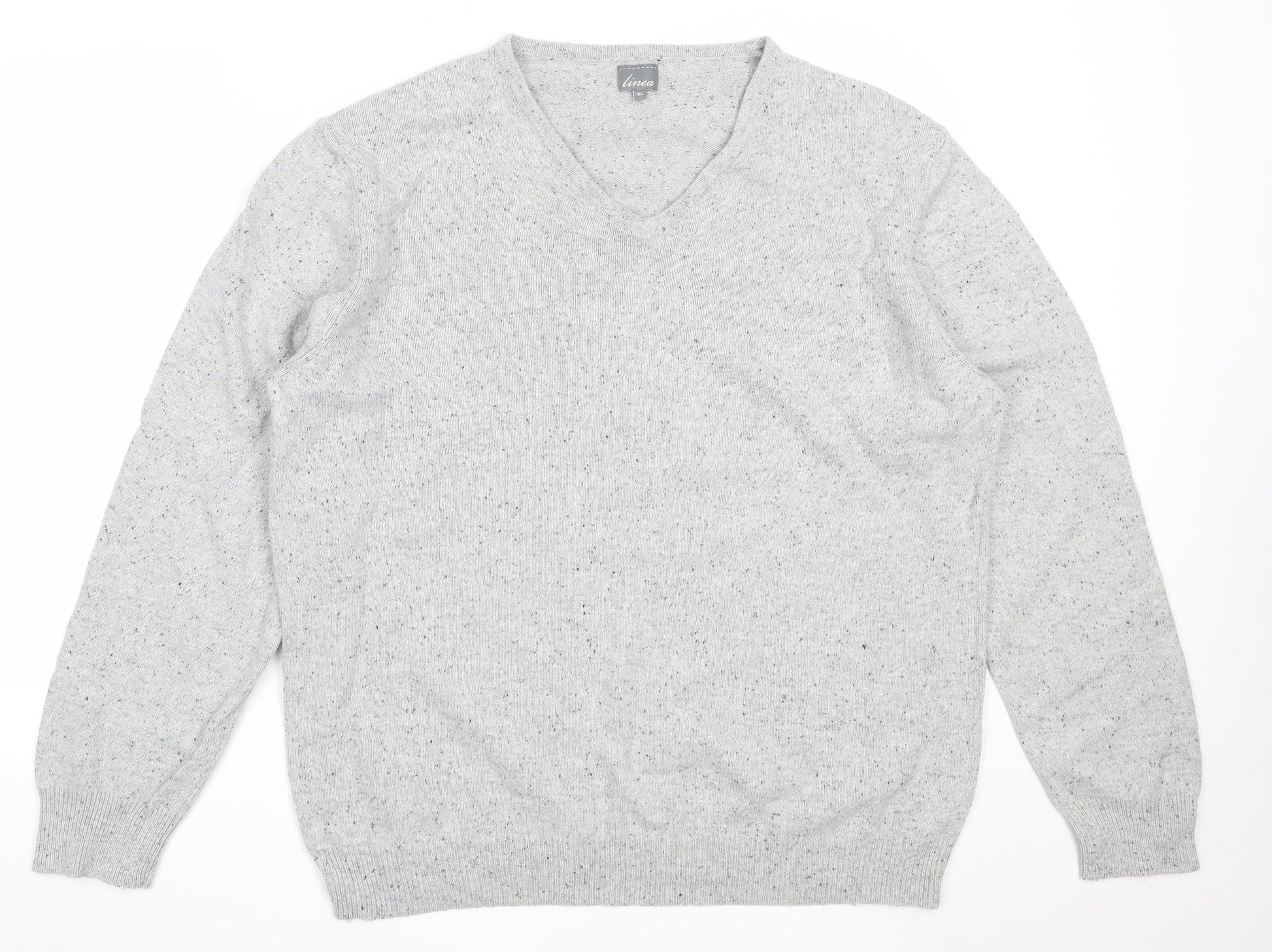 Linea Mens Grey V-Neck Cotton Pullover Jumper Size XL