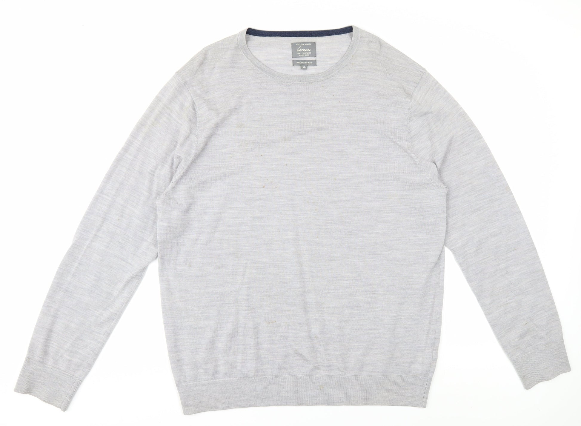 Linea Men's Grey XL Crew Neck Wool Pullover Jumper