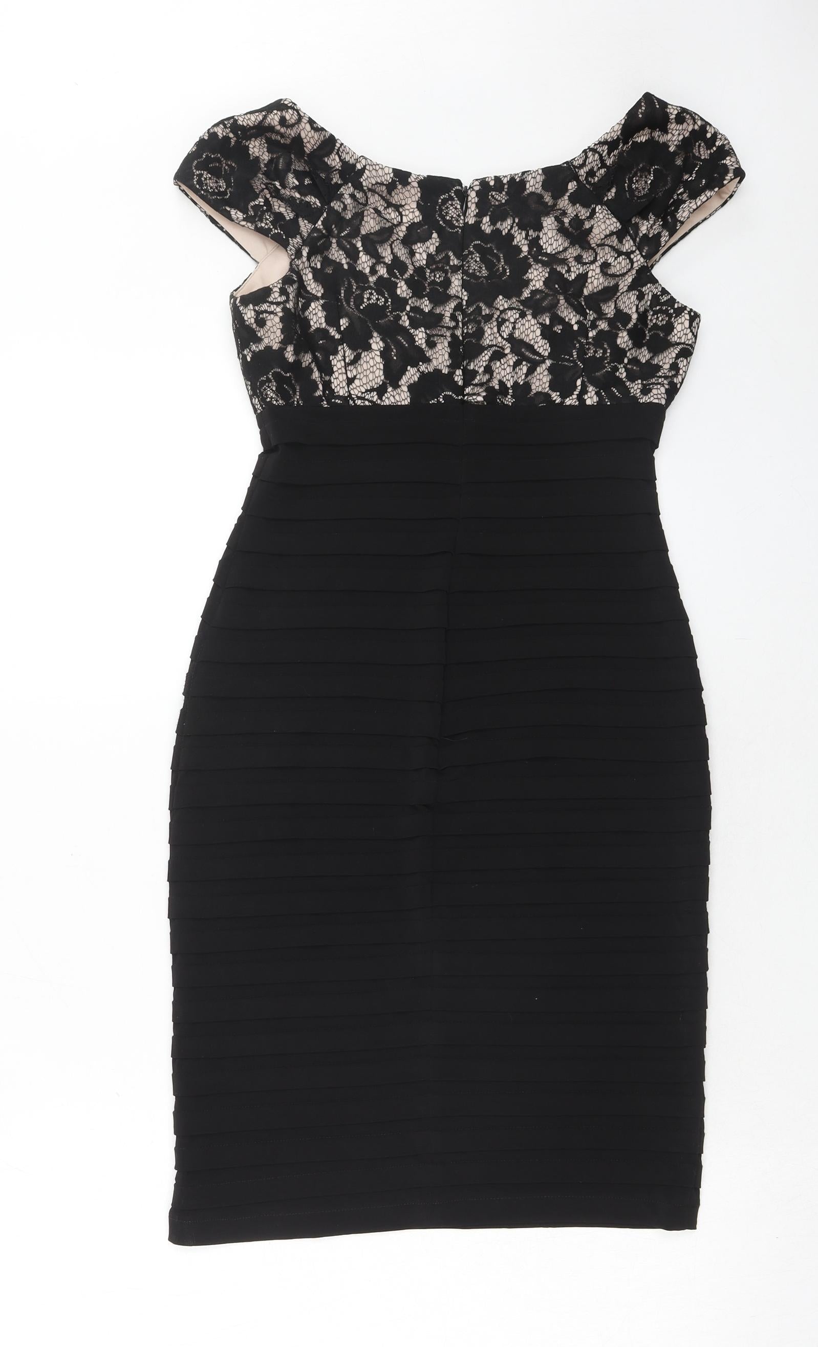 Linea Womens Black Floral Polyester Bodycon Size 8 V-Neck Zip
