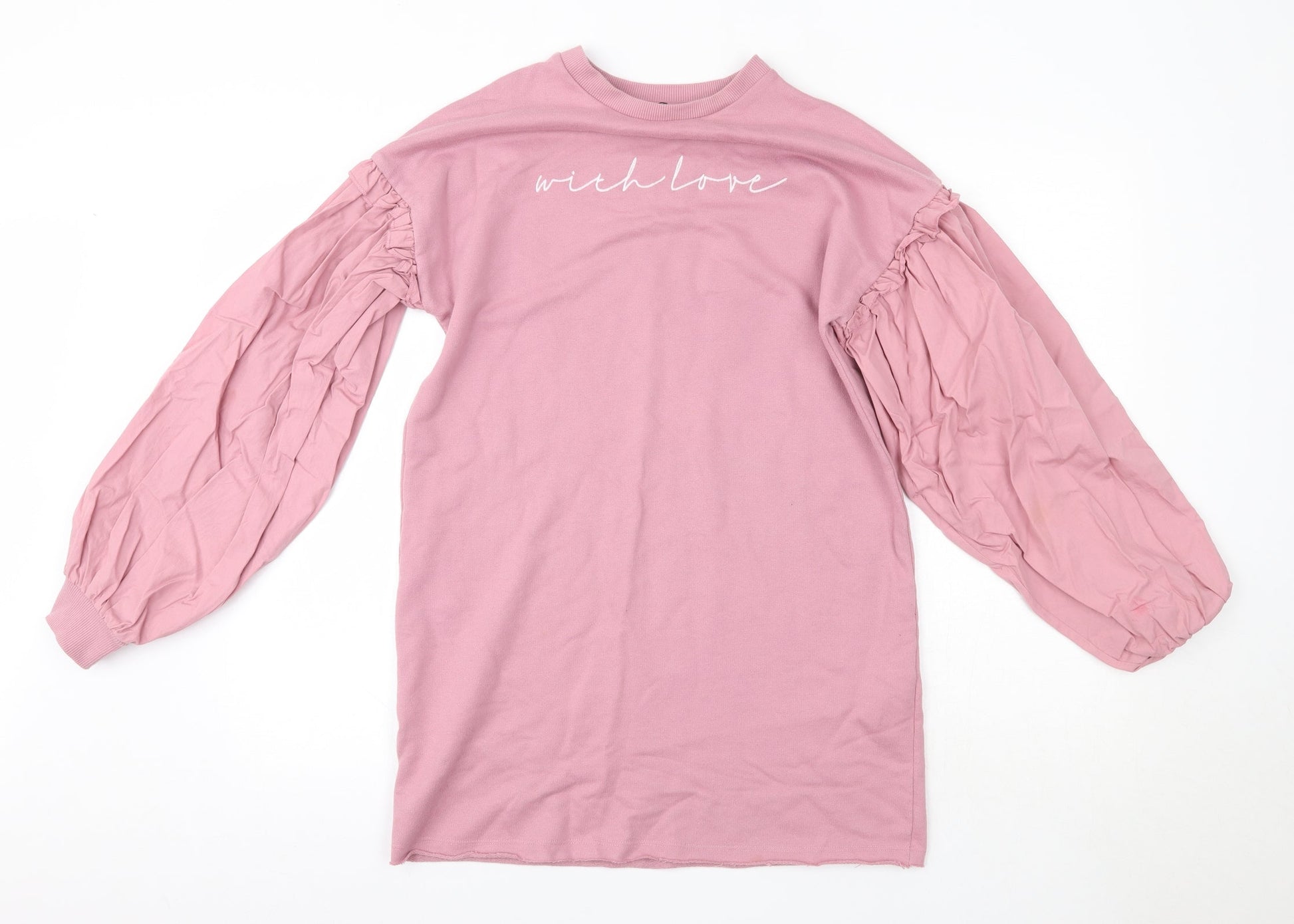 Lipsy London Womens Pink Cotton Jumper Dress Size 6 Round Neck