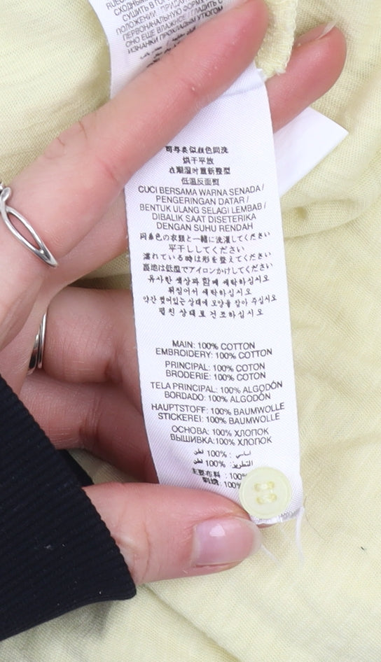 Lipsy Women Yellow Embroidered Cotton Tunic Blouse Size 16