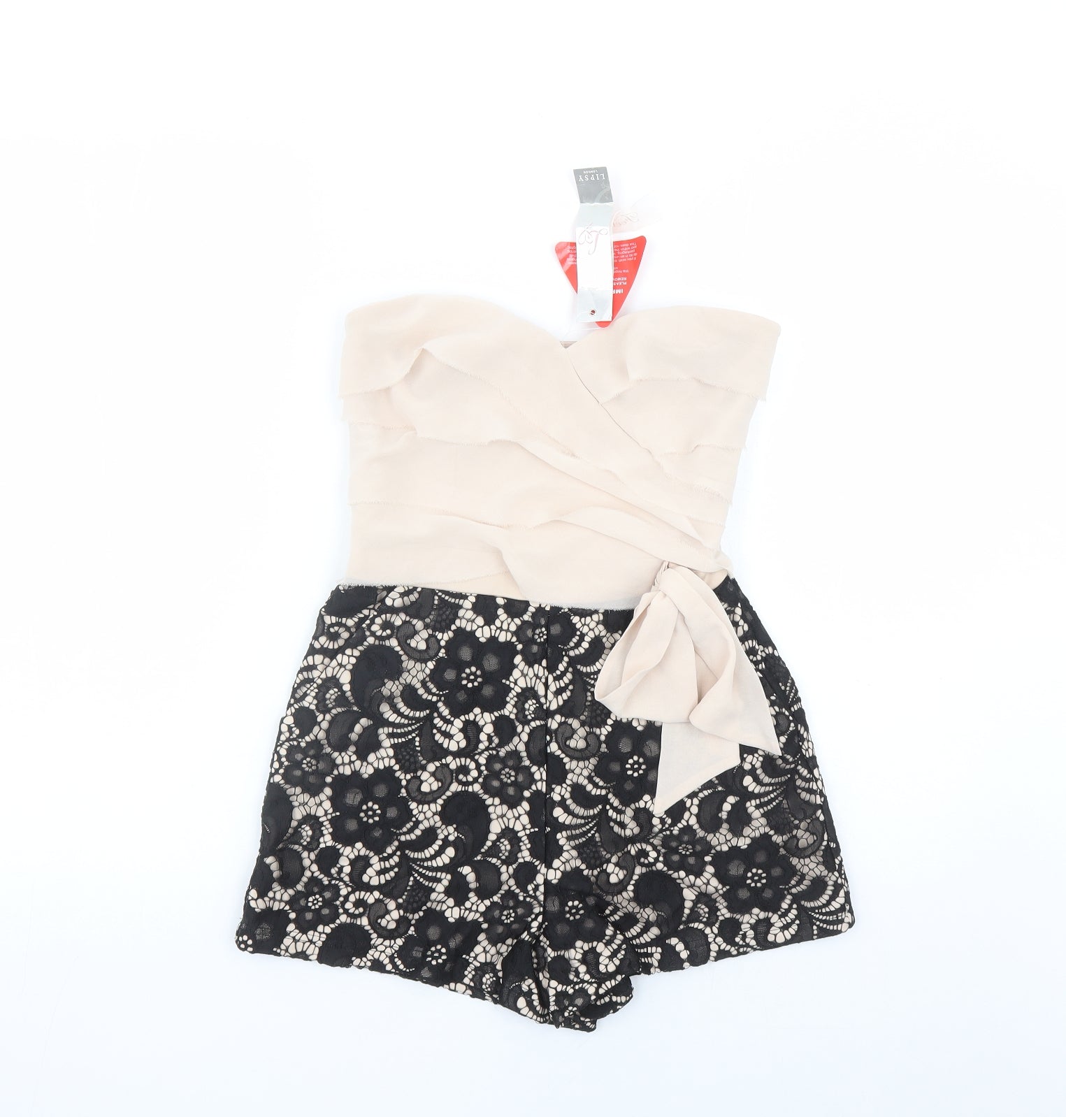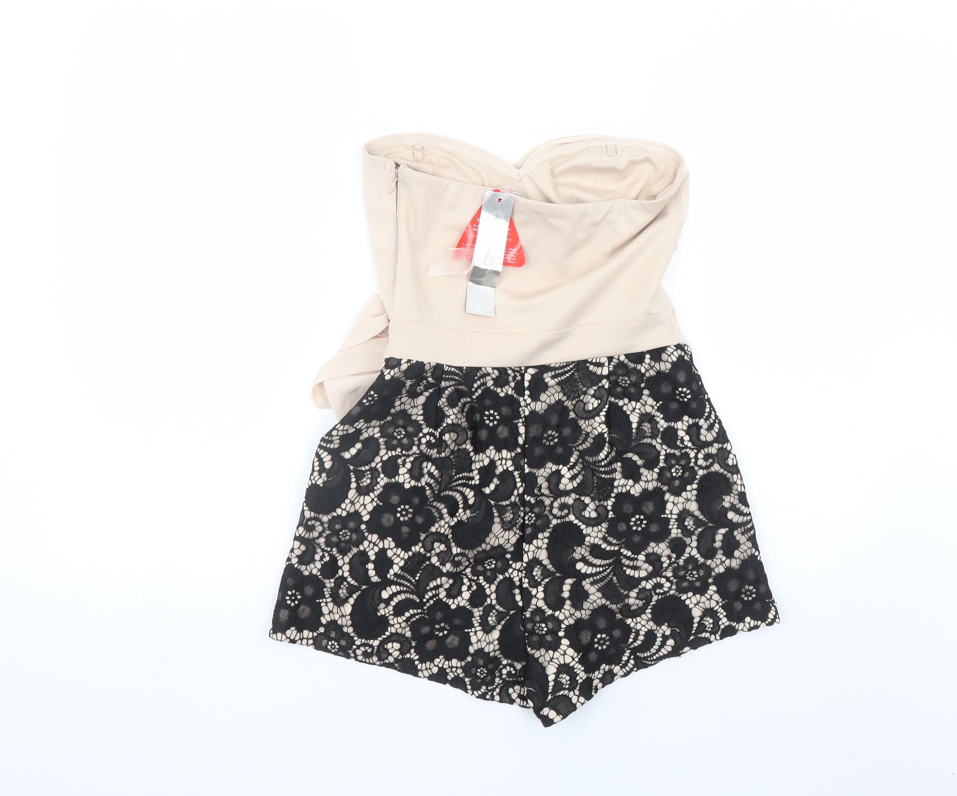 Lipsy Womens Beige Flecked Polyester Playsuit One-Piece Size 10 Zip