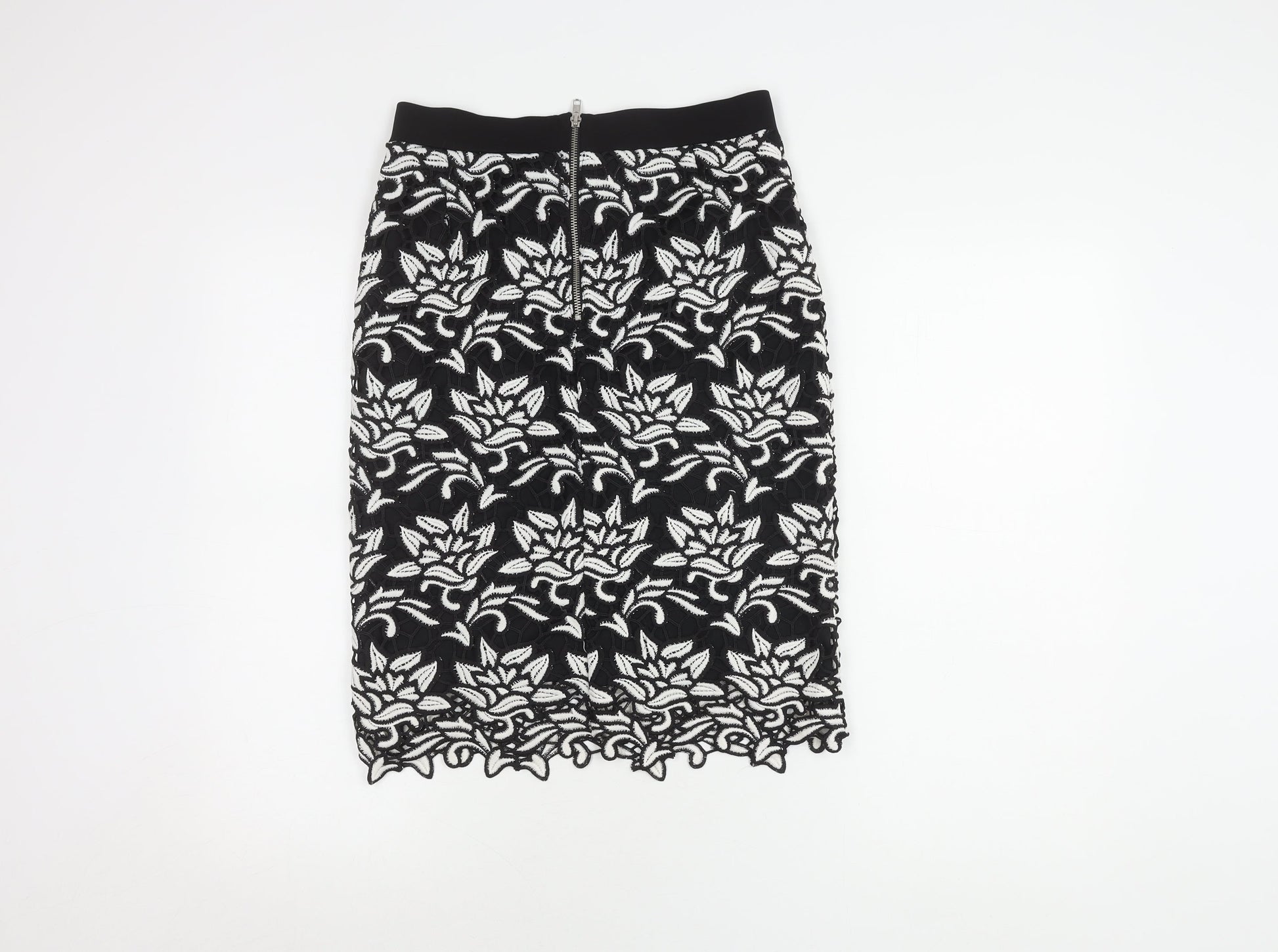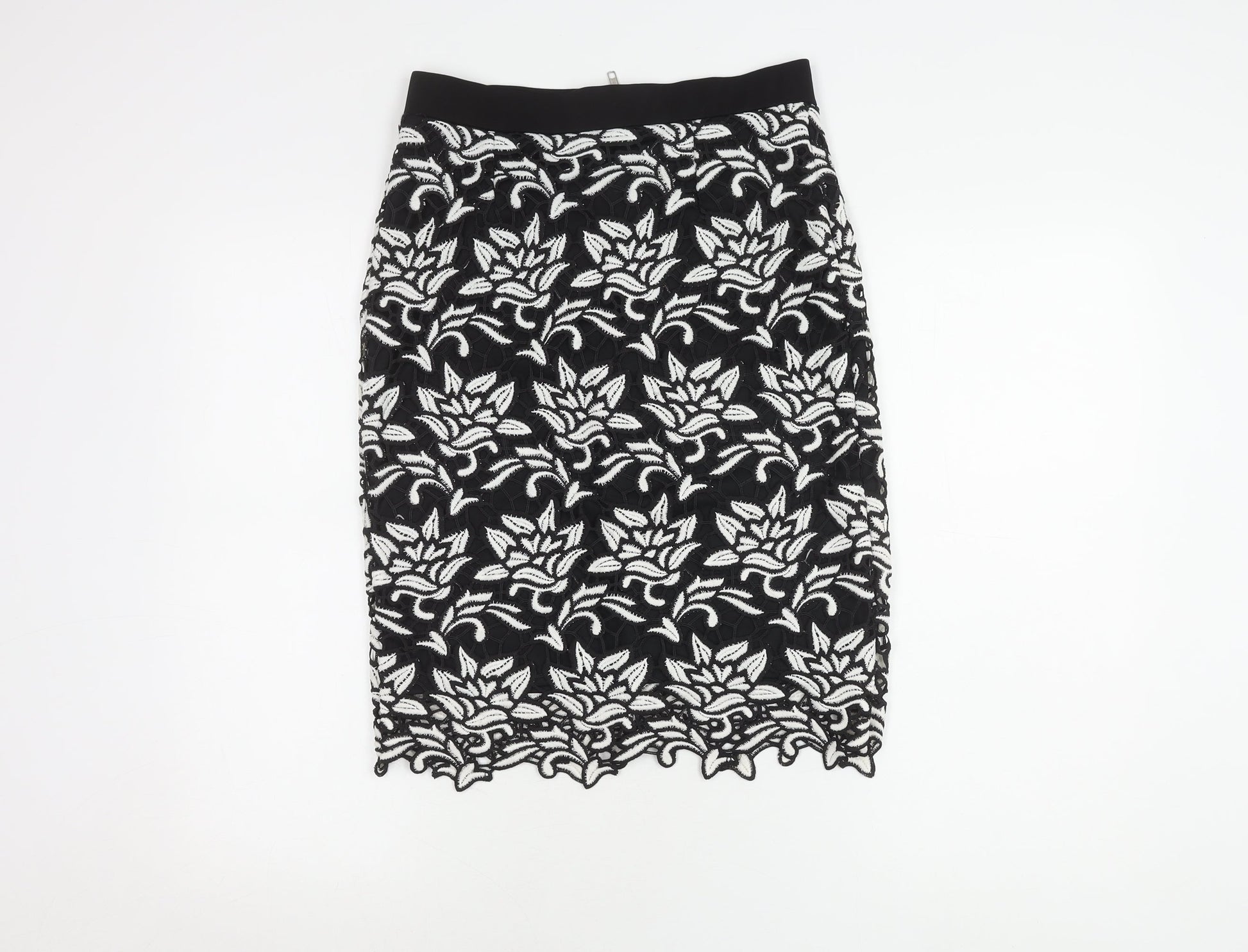 Lipsy Women's Black Floral Embroidered Pencil Skirt Size 12