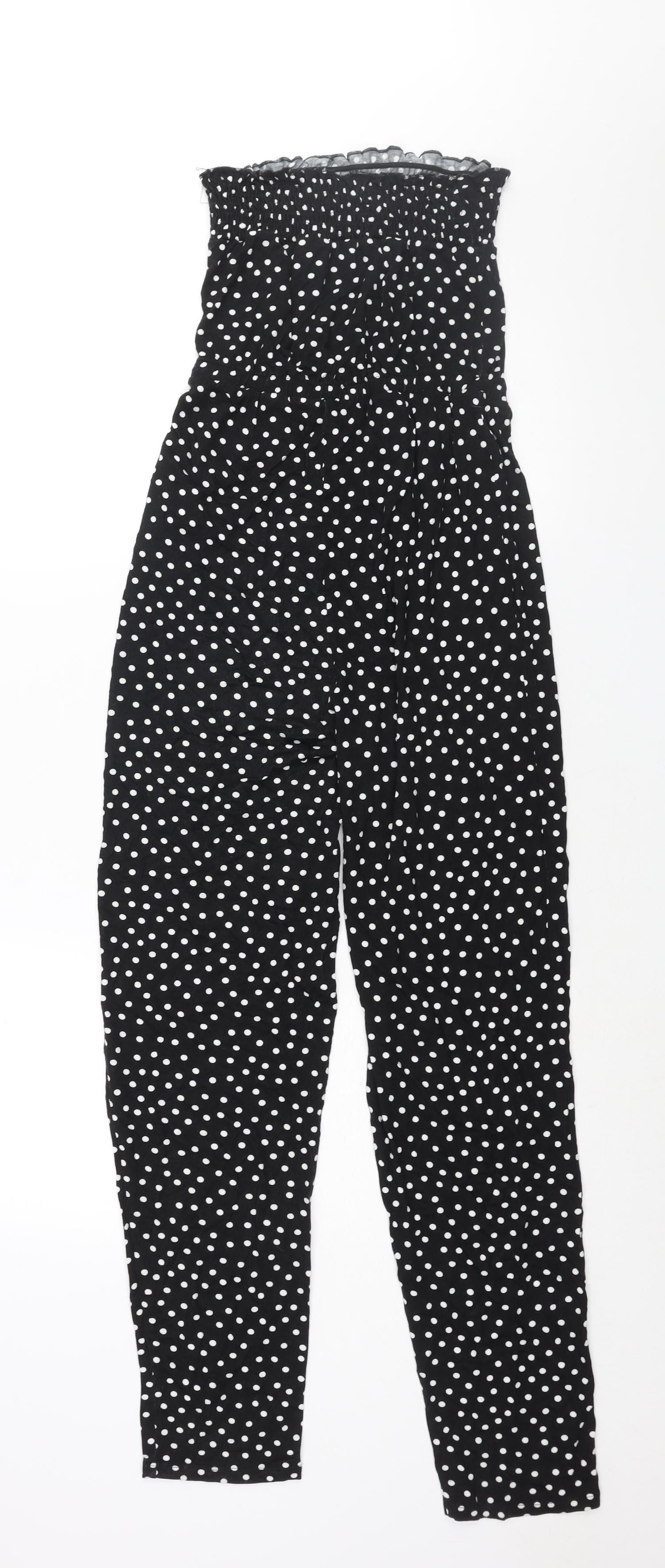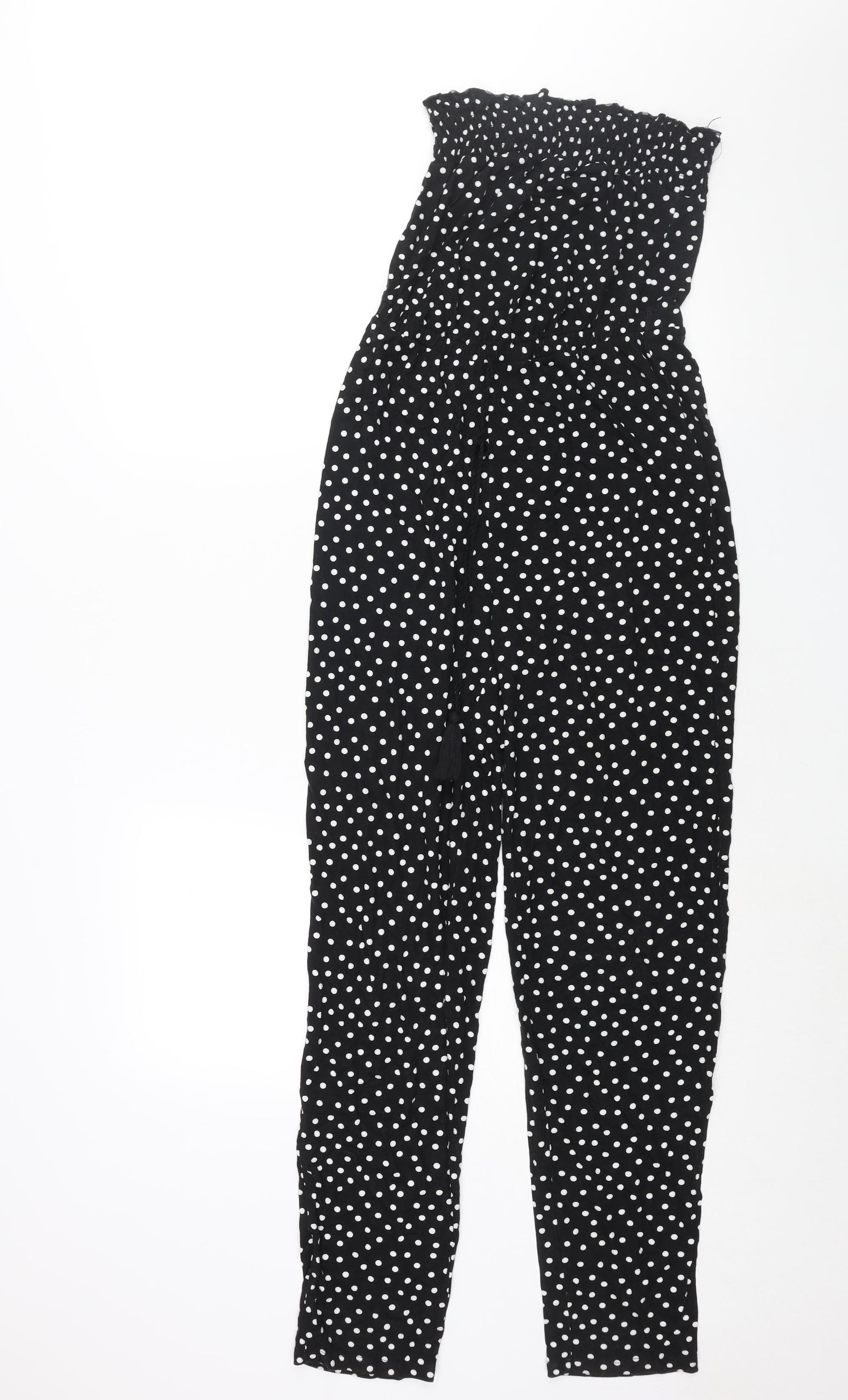 Lipsy Womens Black Polka Dot Viscose Jumpsuit One-Piece Size 8 L31 in Pullover - Rouched Bodice
