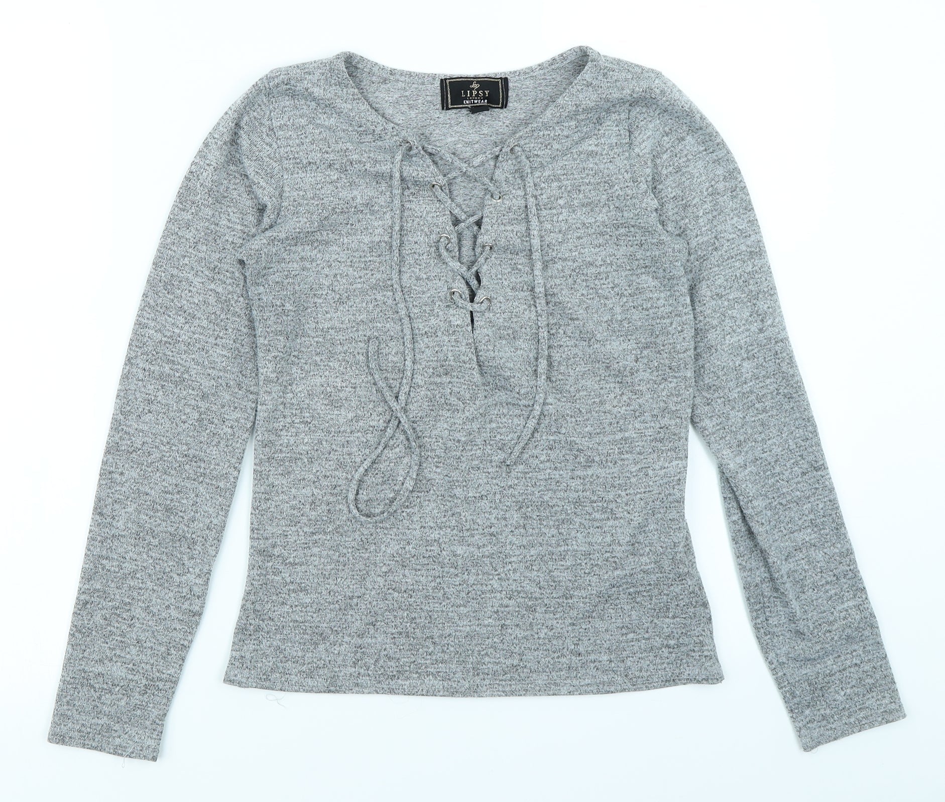 Lipsy Womens Grey Knit Basic T-Shirt Size S