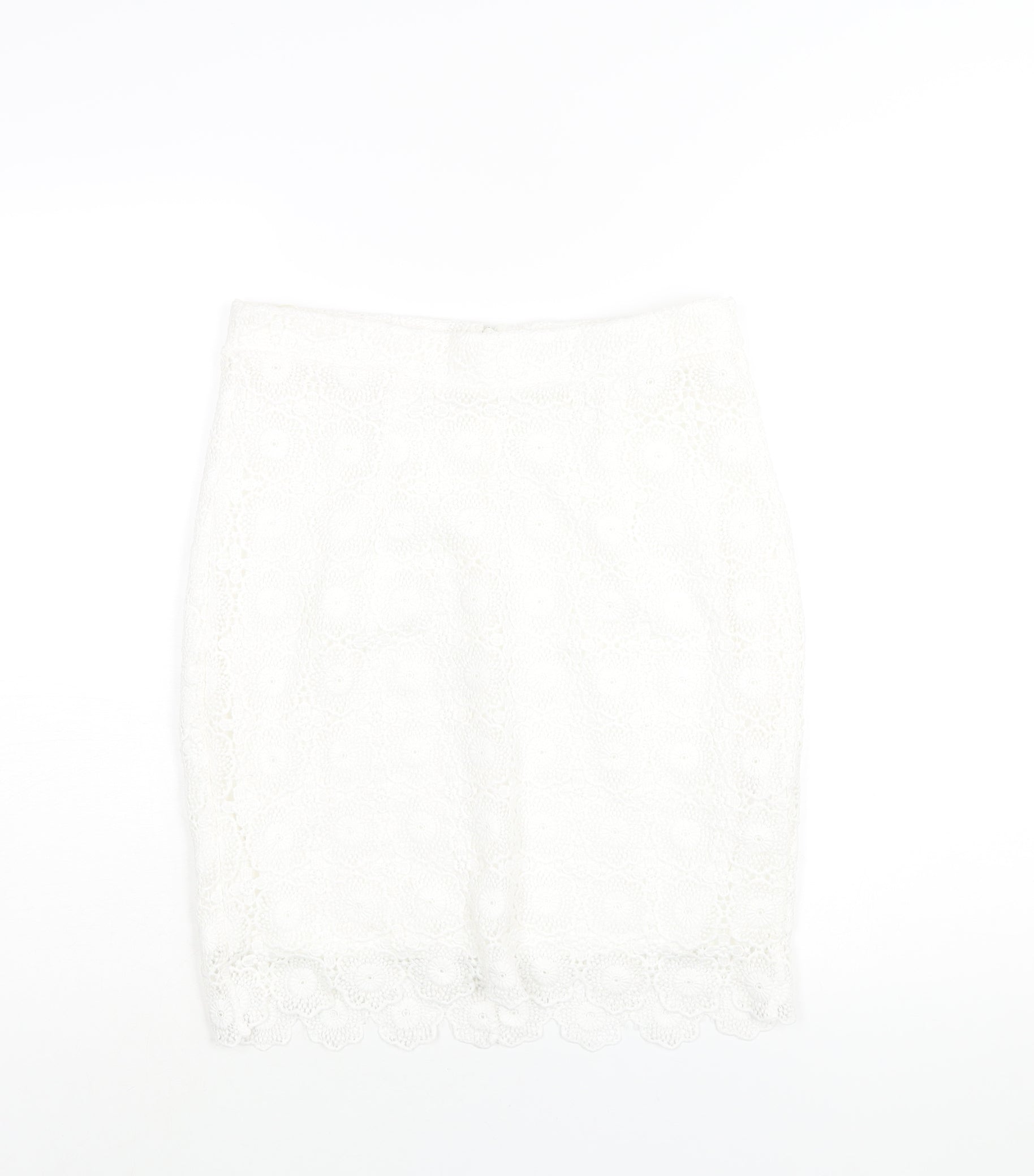 Lipsy Womens White Polyester Straight & Pencil Skirt Size 10 Zip