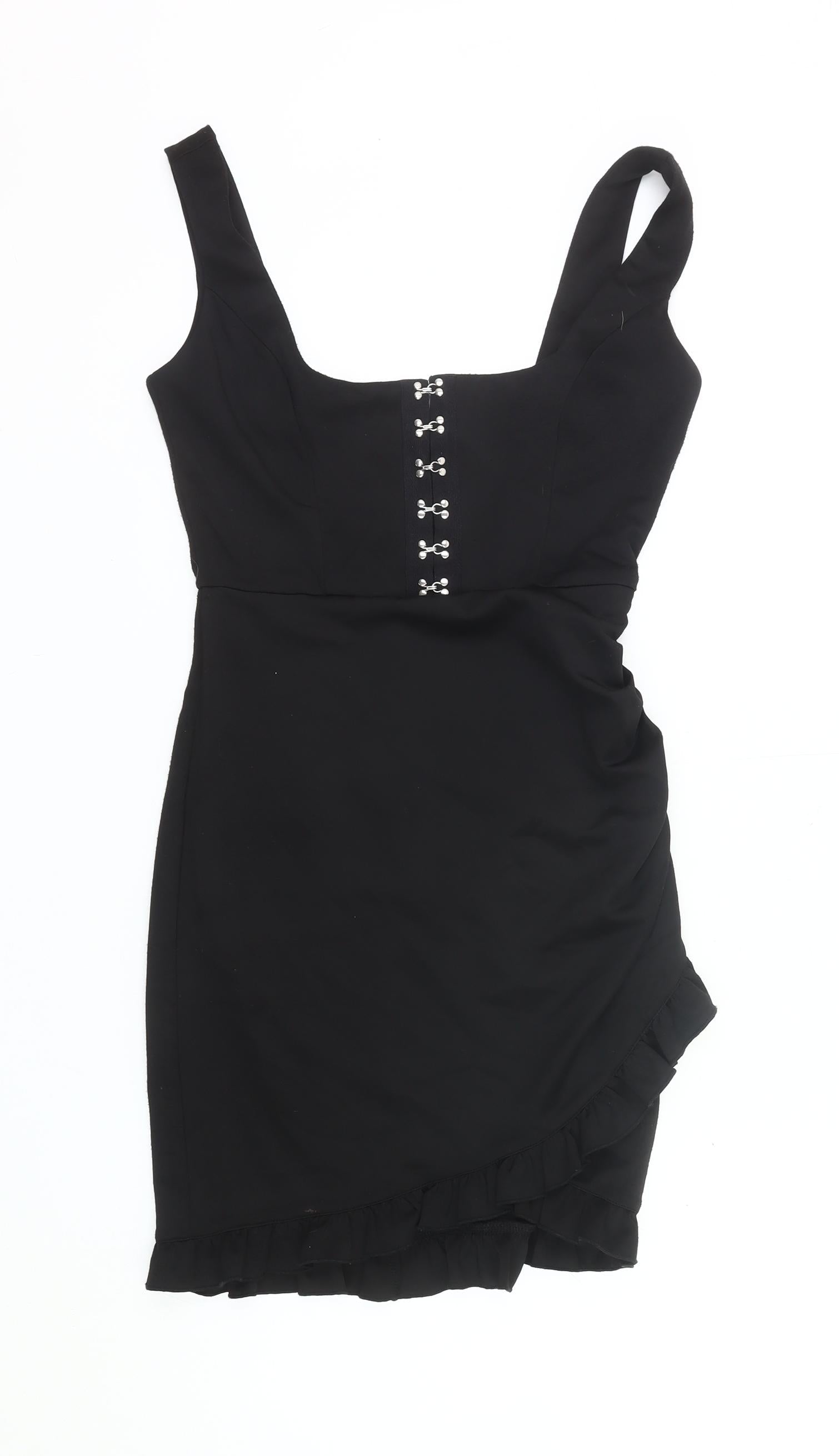 Little Mistress Women’s Black Bodycon Dress UK 8 Ruffle Trim Partywear