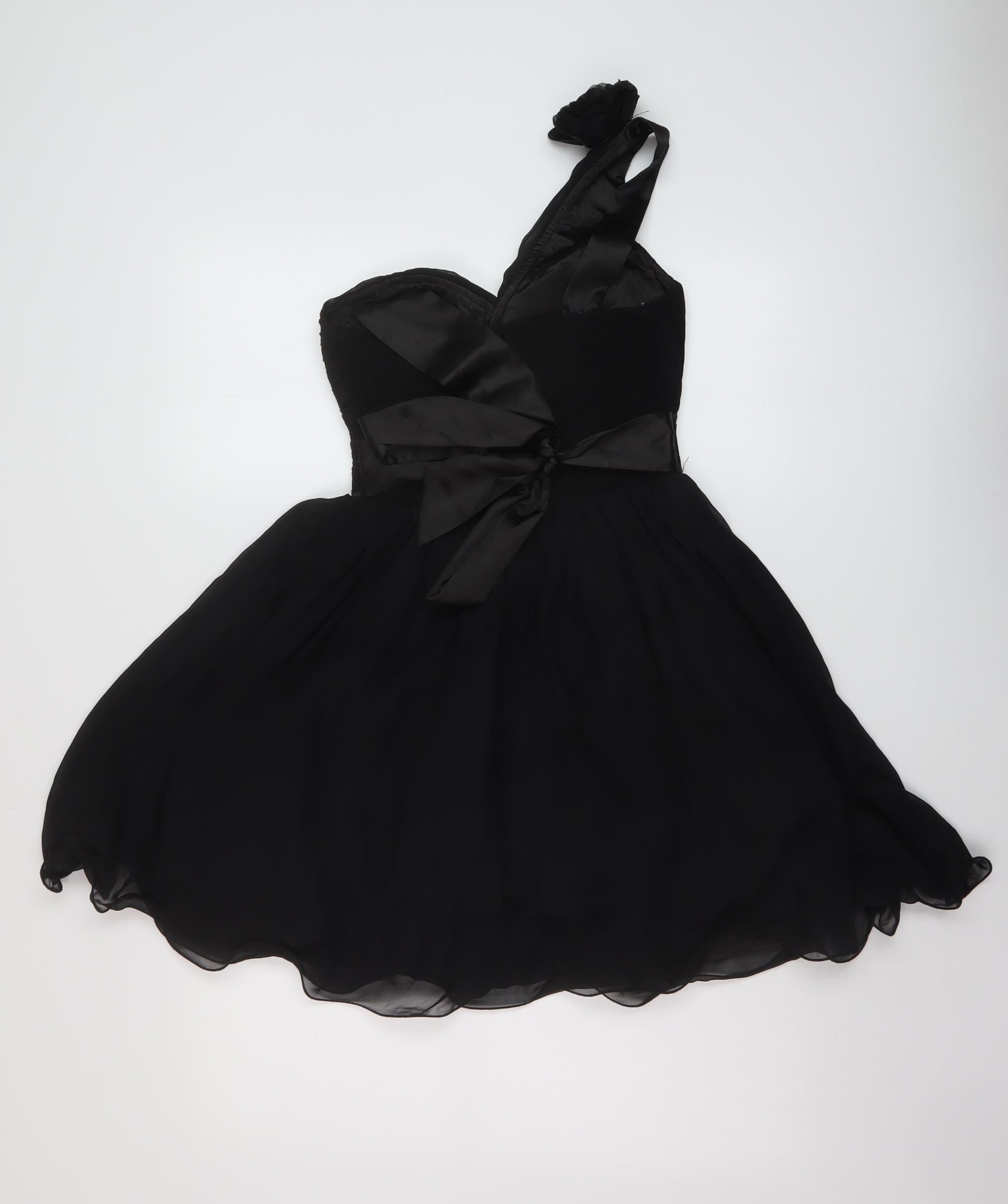 Little Mistress Womens Black Polyester Skater Dress Size 10 One Shoulder Zip