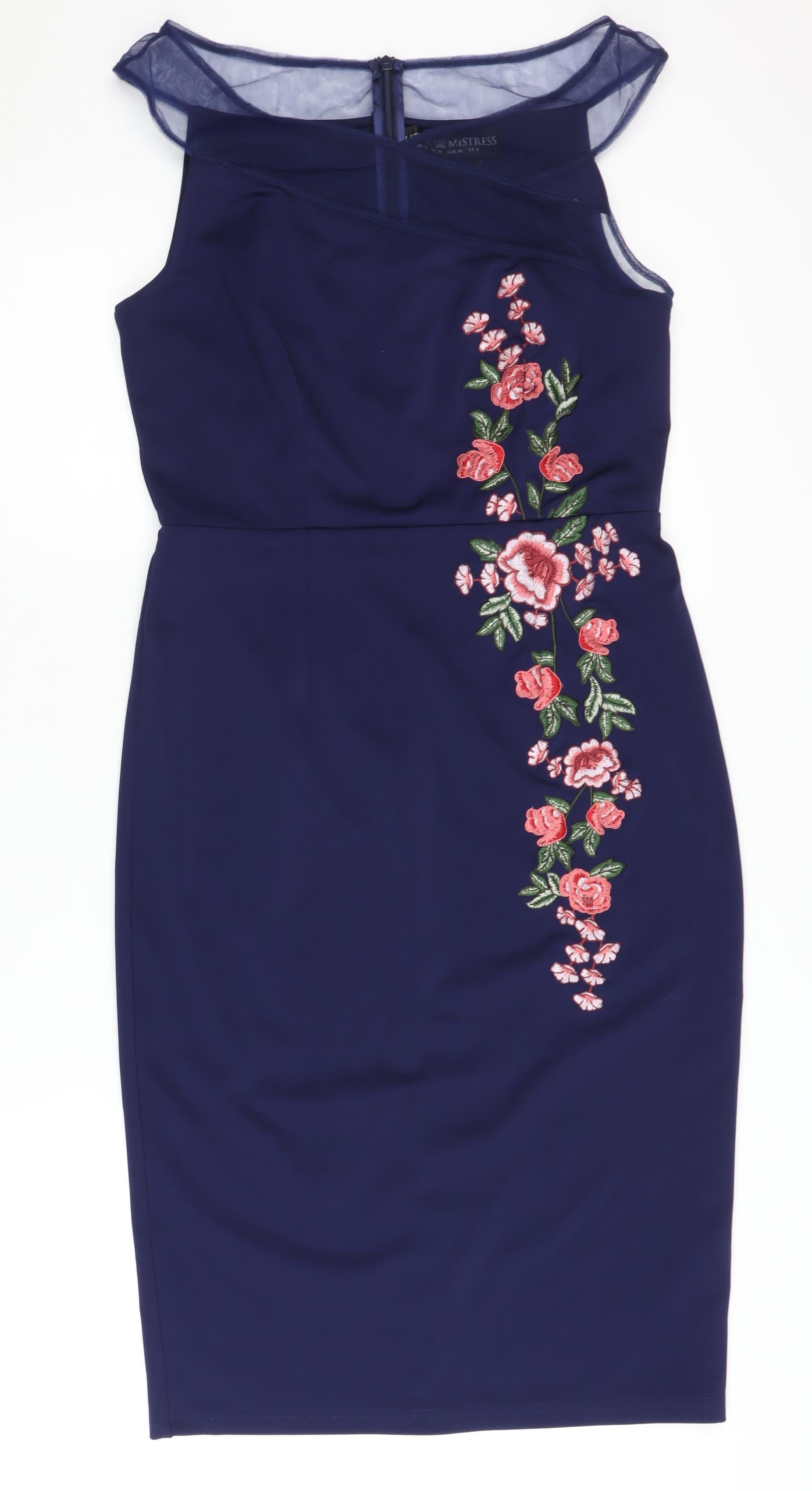Little Mistress Women's Blue Floral Pencil Dress Size 10
