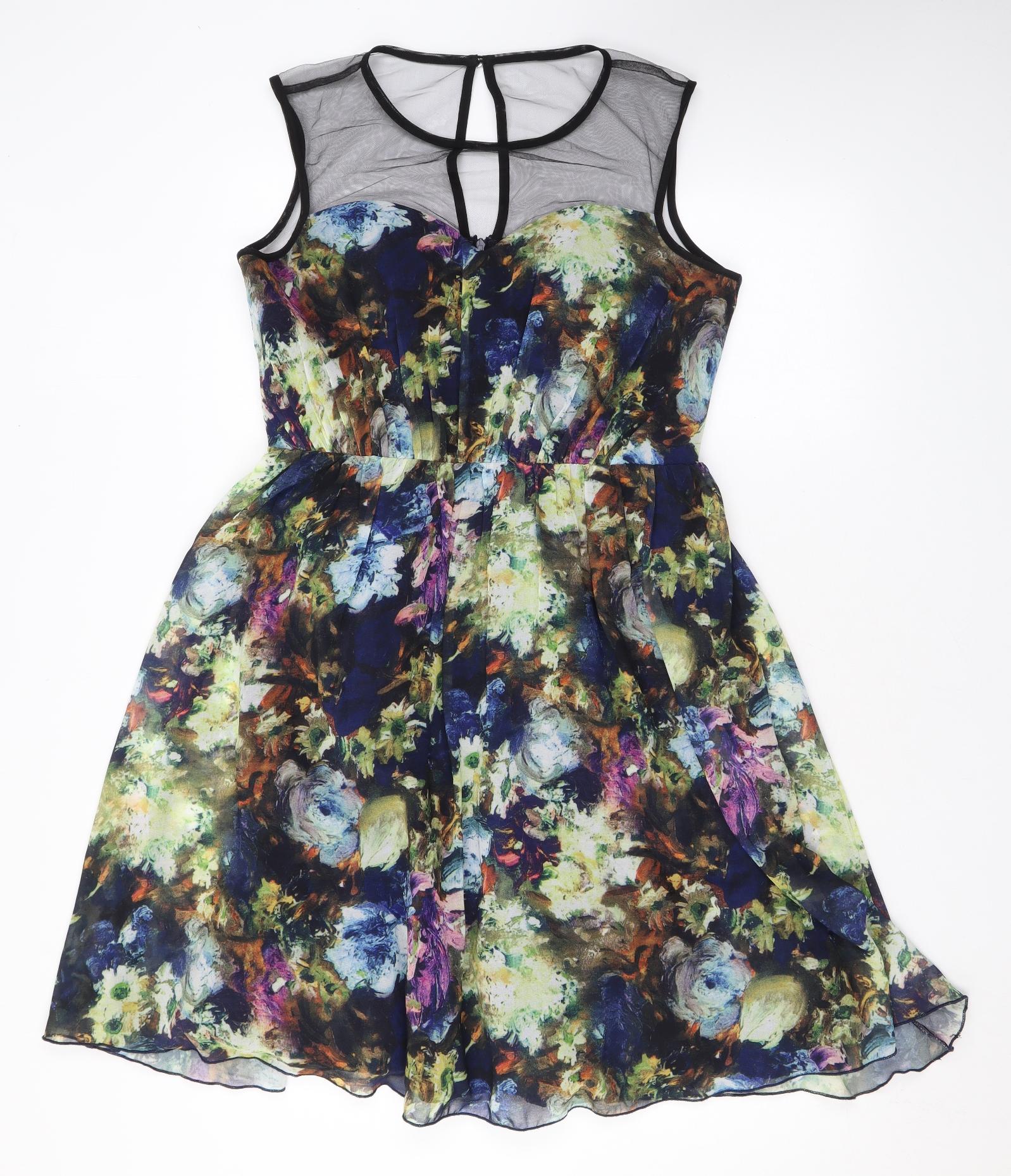 Little Mistress Womens Multicoloured Floral Polyester A-Line Size 12 Round Neck Button