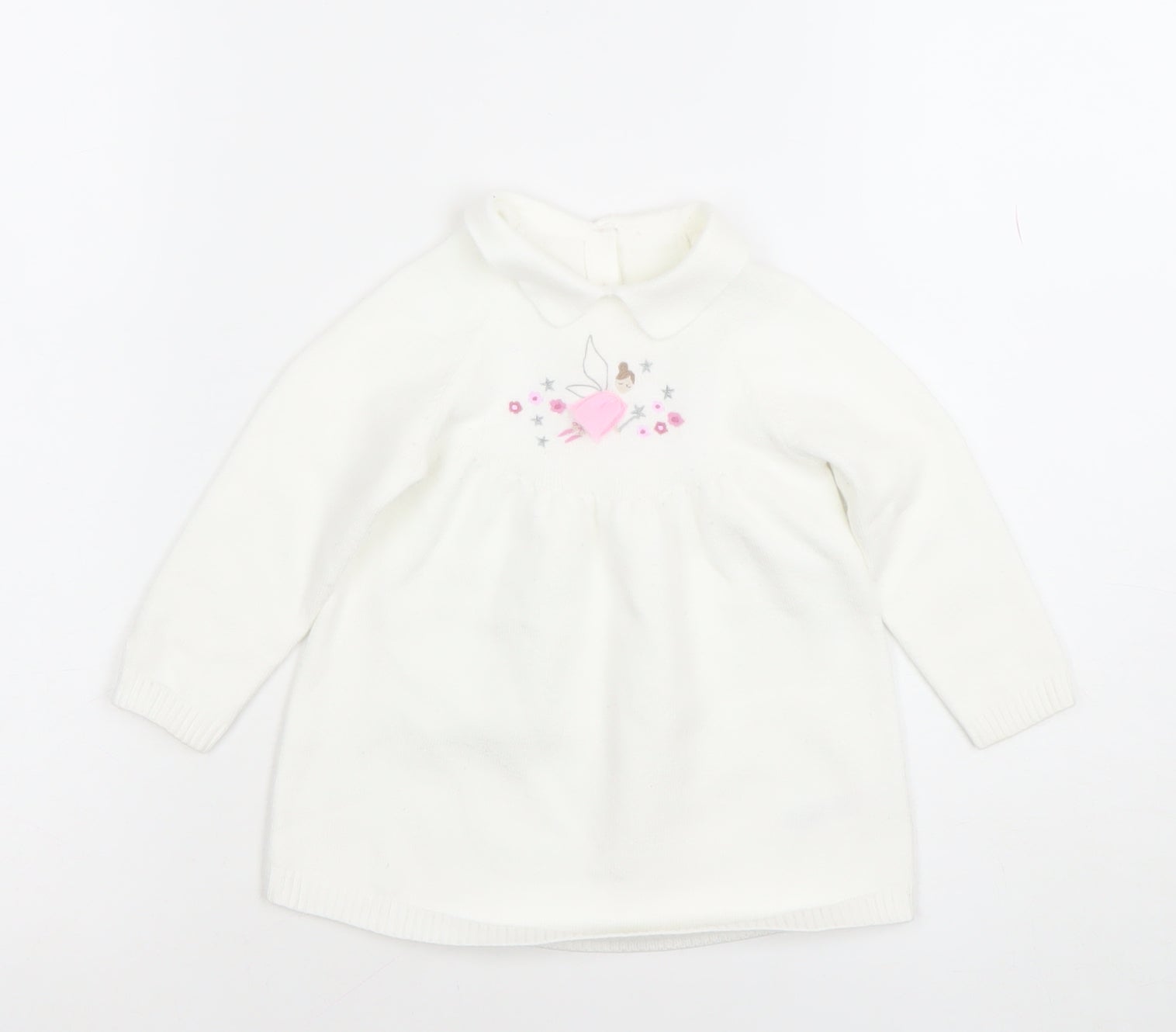 Little Nutmeg Girls White Collared Knit Fairy Dress 9-12 Months