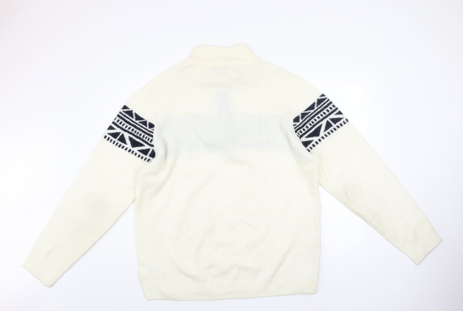 Livergy Men’s Ivory Geometric 1/2 Zip High Neck Jumper XL