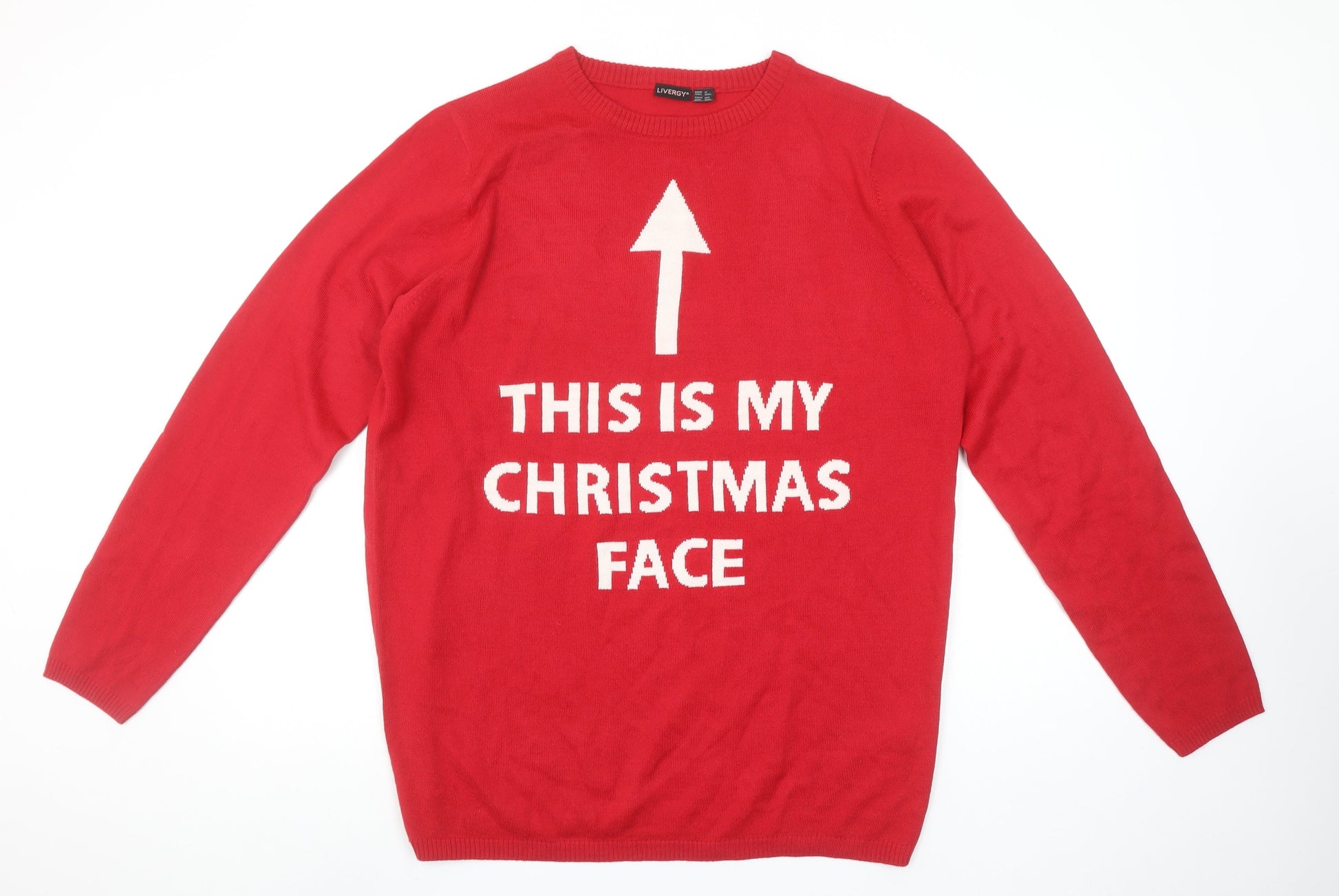 Livergy Men's Red Christmas Graphic Pullover Jumper Size L