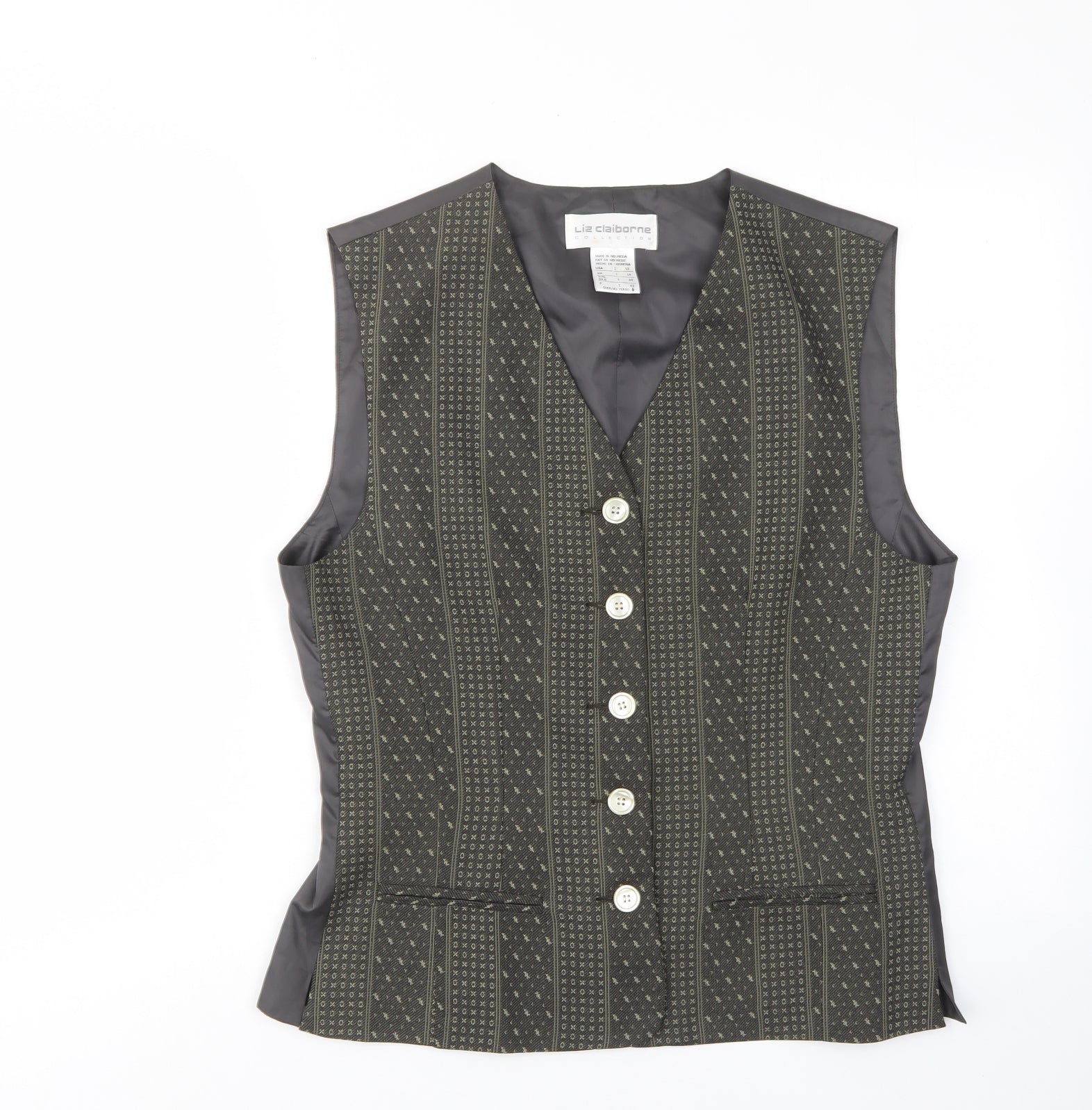 Liz Claiborne Womens Brown Geometric Polyester Jacket Suit Waistcoat Size 14