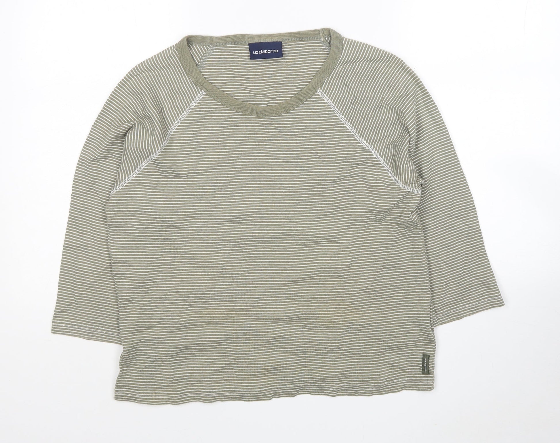 Liz Claiborne Womens Green Round Neck Striped Cotton Pullover Jumper Size L