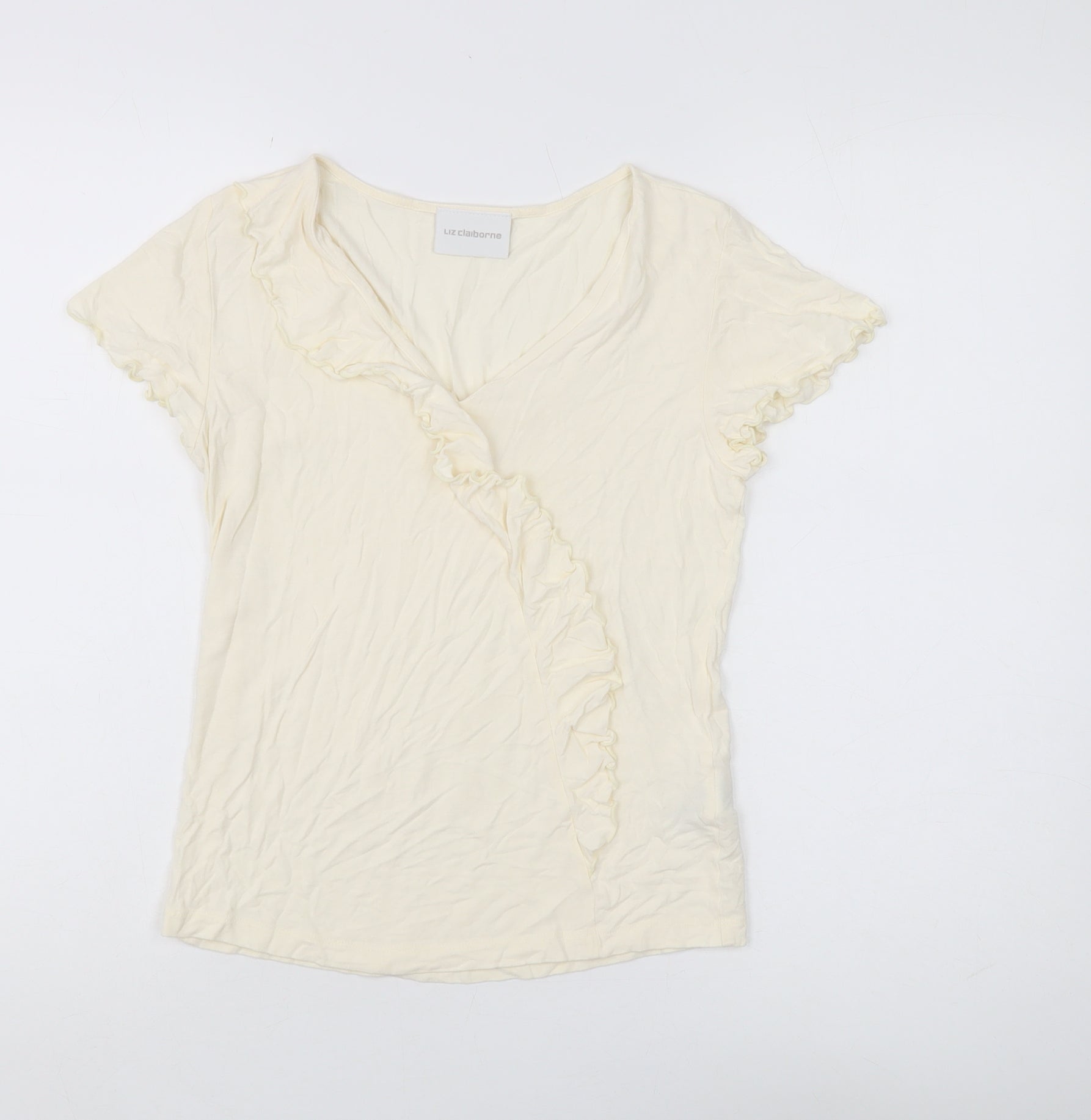 Liz Claiborne Women's Ivory Ruffle T-Shirt S