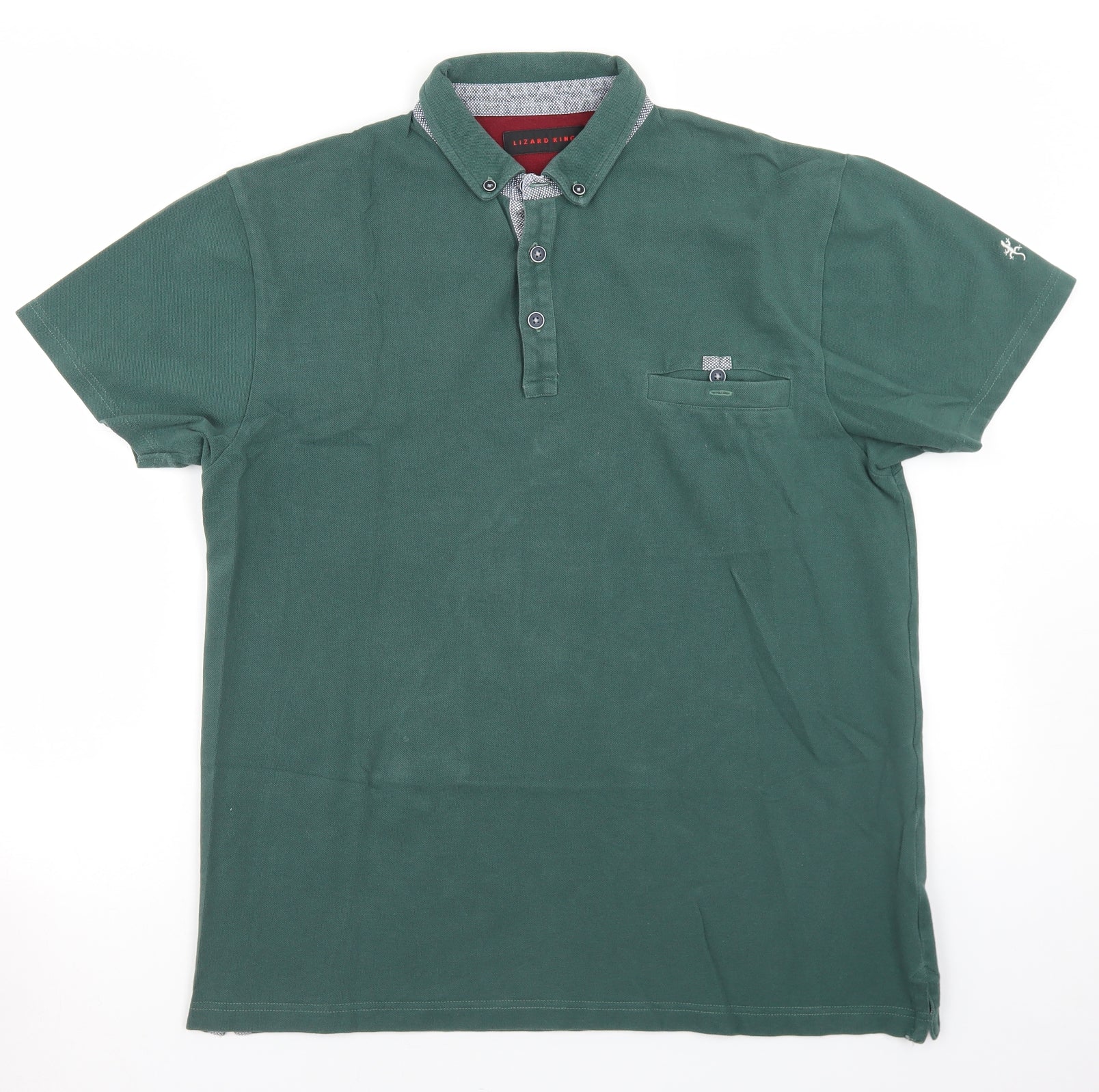 Lizard King Mens Green Cotton Polo Size M Collared Button